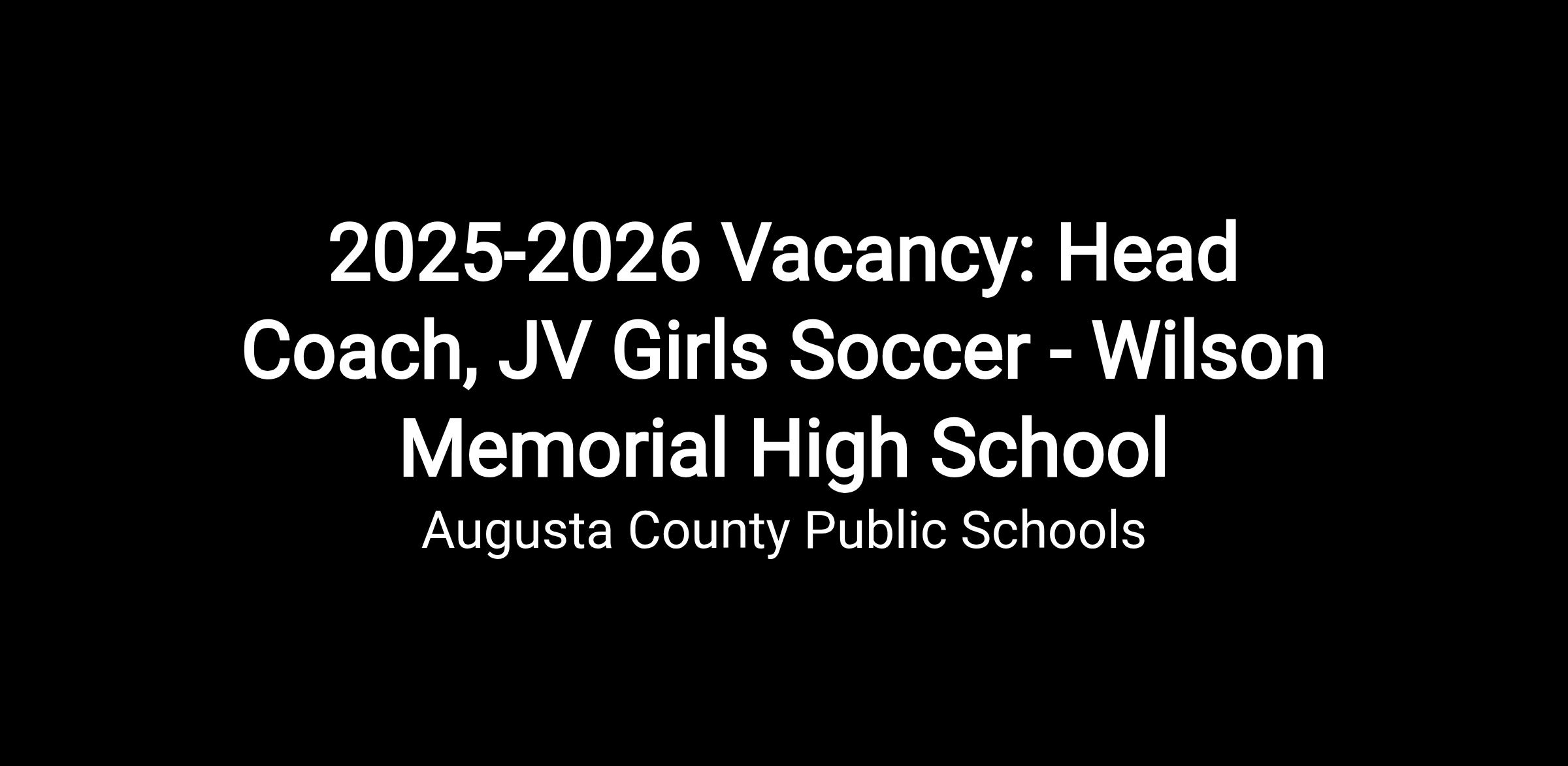 Wilson Memorial High School is seeking a Head Coach of the JV Girls Soccer Team for the 2025-2026 spring season.