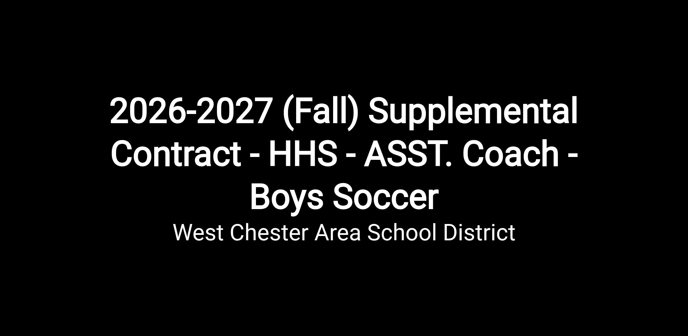 Wesst Chester Area School District has the following supplemental contract position available at the high school level: