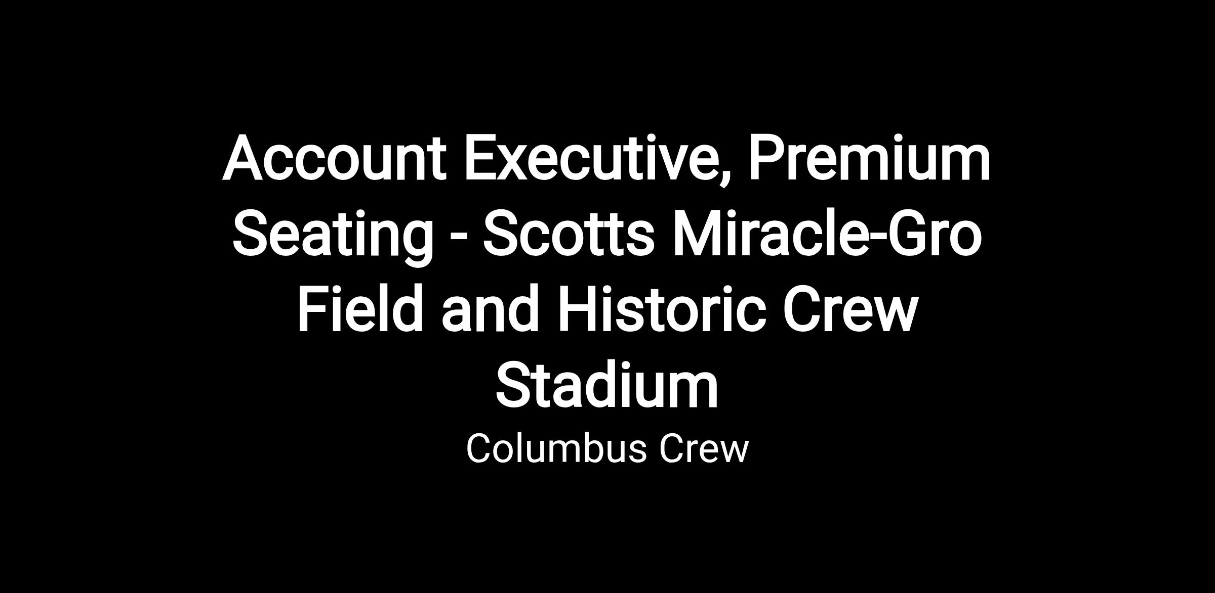 The Columbus Crew are seeking a driven, intrinsically motivated and team-oriented individual. The Account Executive, Premium Seating will work under the Director, Premium & Season Ticket Sales and is responsible for generating new business revenue as it relates to Columbus Crew inventory and certain events held at both Scotts Miracle-Gro Field and Historic Crew Stadium. This full menu position will be responsible for selling suites, premium season tickets and premium hospitality through B2C and B2B leads. The role of Account Executive, Premium Seating will look to build high level relationships throughout the business community through prospecting, networking events, and both outside of office appointments along with in-stadium appointments. As a member of the Premium Sales team, you will drive the sale of current products as well as ideation of new and innovative experiences to forward the business.