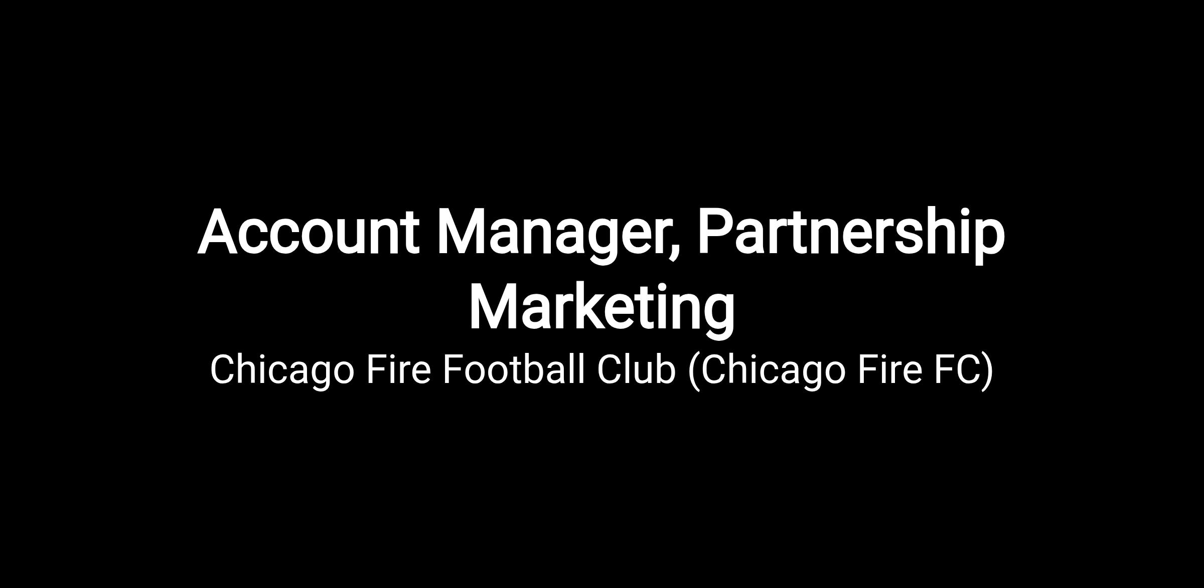 Position Overview:The Club’s Partnership Team is responsible for creating and driving comprehensive soccer marketing platforms to reach the objectives and drive ROI for corporate partners. The Partnership Marketing team is responsible for deepening relationships with current partners, activating all contractual elements, and renewing and upselling partners. The Account Manager will manage relationships with local and national brands who are corporate partners of the Chicago Fire FC.