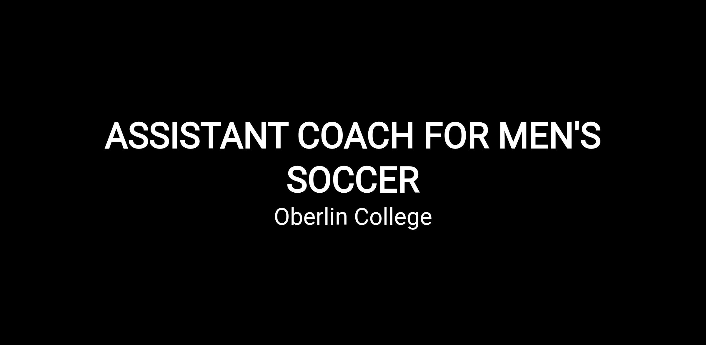 Oberlin, Ohio, The Oberlin College Department of Athletics and Physical Education invites applications for the position of Assistant Men’s Soccer Coach. This is a full-time, 12-month Administrative and Professional Staff position, reporting to the Head Men’s Soccer Coach and working with the Associate Vice President for Athletics Advancement and Delta Lodge Director of Athletics & Physical Education.