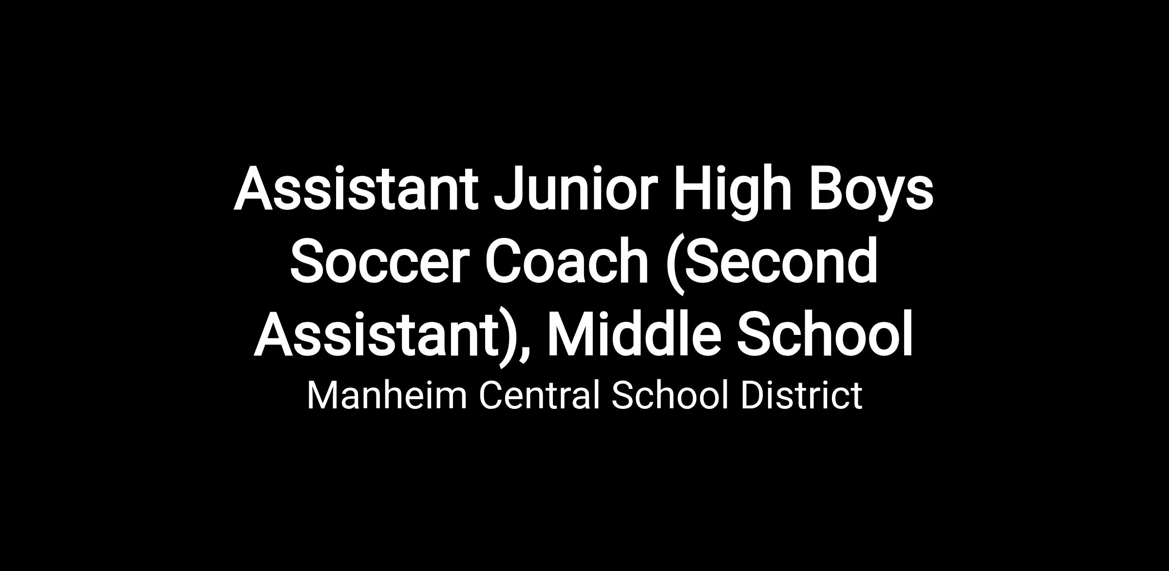 The Manheim Central School District is hiring an Assistant Junior High Boys Soccer Coach (Second Assistant) to join our Middle School staff for the 2026-2027 season.