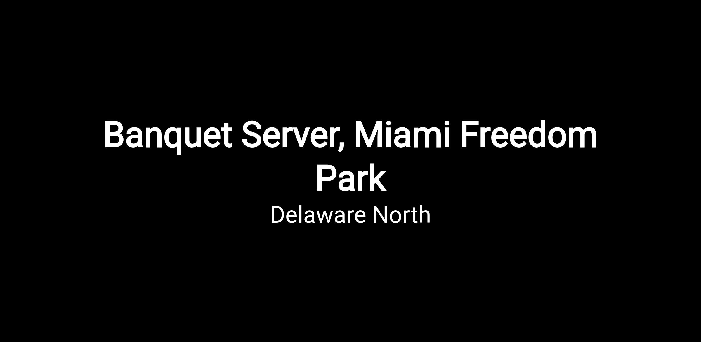 Delaware North Sportservice is hiring seasonal Banquet Servers to join our team at Miami Freedom Park in Miami, Florida. As a Banquet Server, you will provide outstanding guest service while serving food and beverages in a banquet setting. If you are looking for a fast-paced event server role offering the opportunity and potential to learn where your efforts are rewarded, apply now.