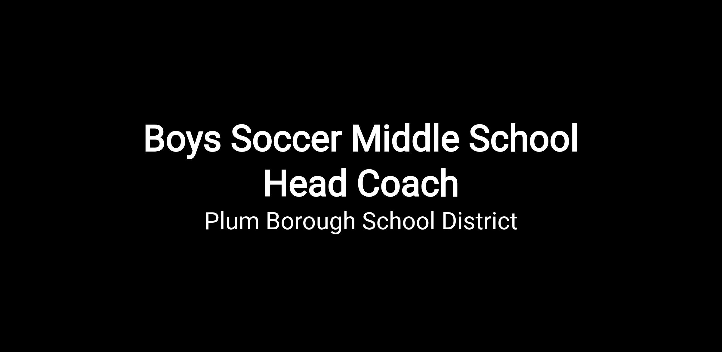 The Plum Borough School District is seeking a passionate, dedicated and experienced Boys Soccer Middle School Head Coachto assist our Soccer program and inspire student-athletes both on and off the field.