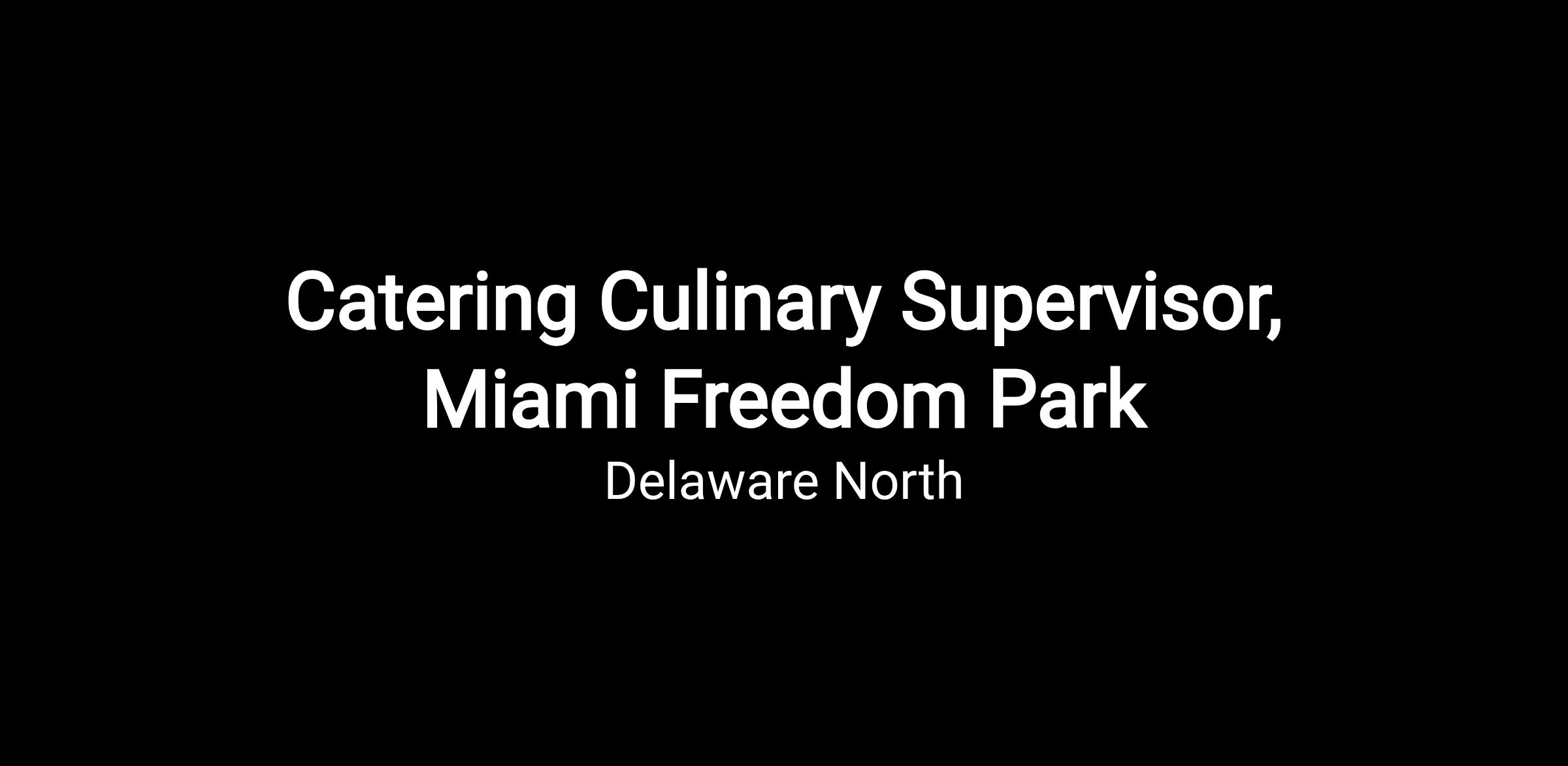 Delaware North Sportservice is hiring seasonal Catering Culinary Supervisors to join our team at Miami Freedom Park in Miami, Florida. Our ideal Catering Culinary Supervisor is an experienced Cook who enjoys working in a collaborative and fast-paced environment, taking pride in delivering exceptional food service and culinary excellence to our guests. If you thrive on excitement and want your workday to fly by, apply now to join the game day action.