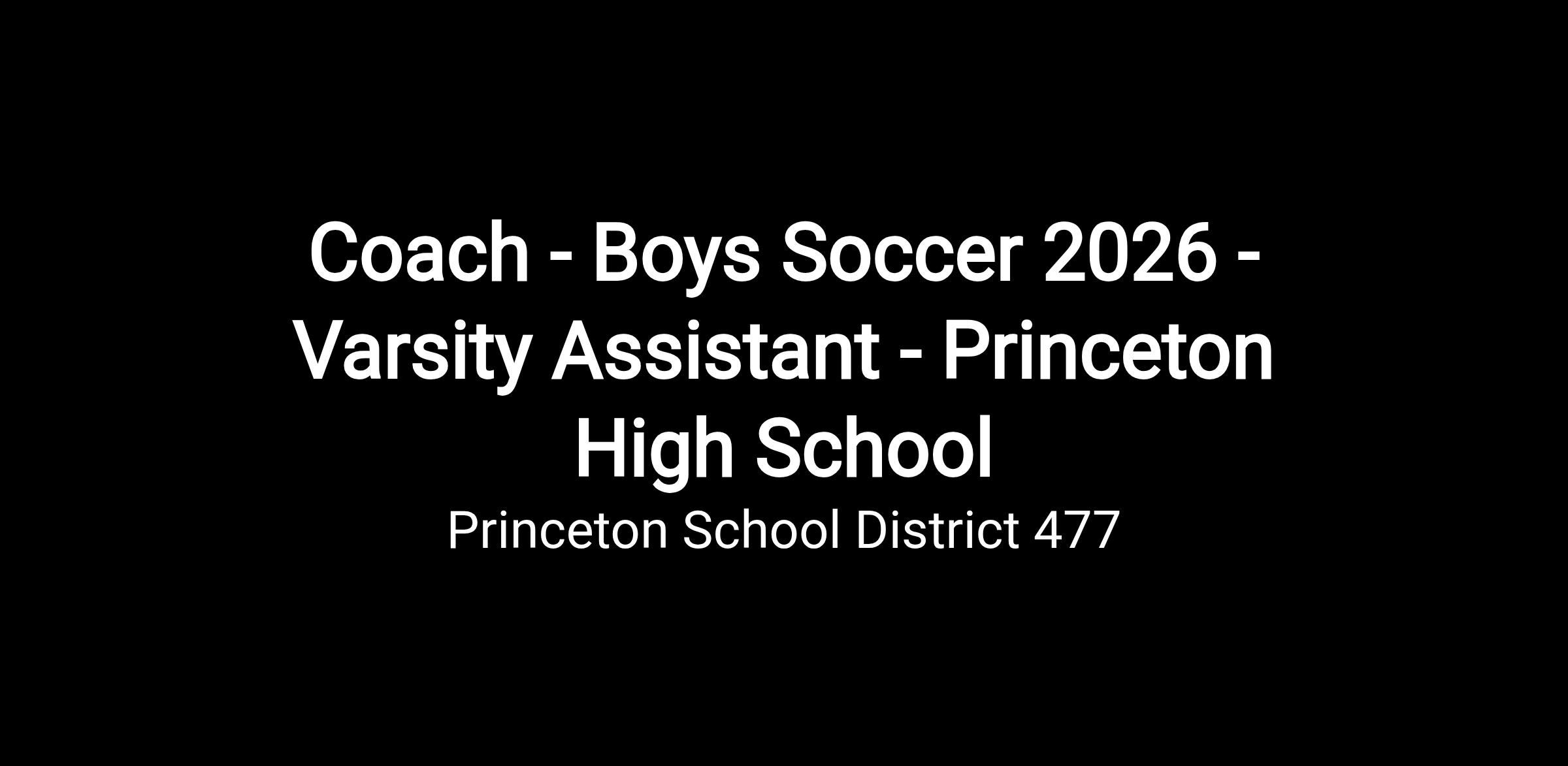 Coach- Boys Soccer - 2026 Varsity Assistant - Princeton High School