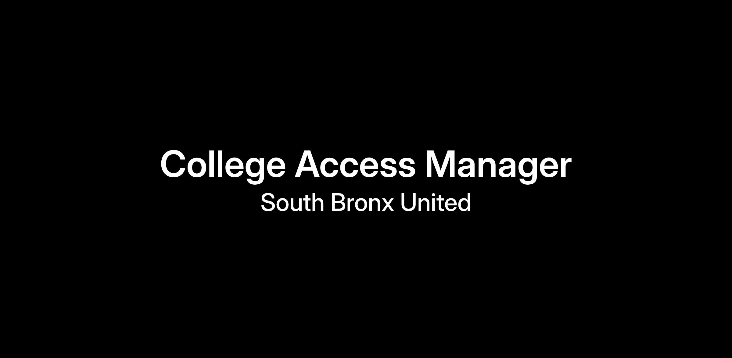Please send your cover letter and resume to hiring@southbronxunited.org with "College Access Manager" in the subject line. Only qualified candidates will be contacted.