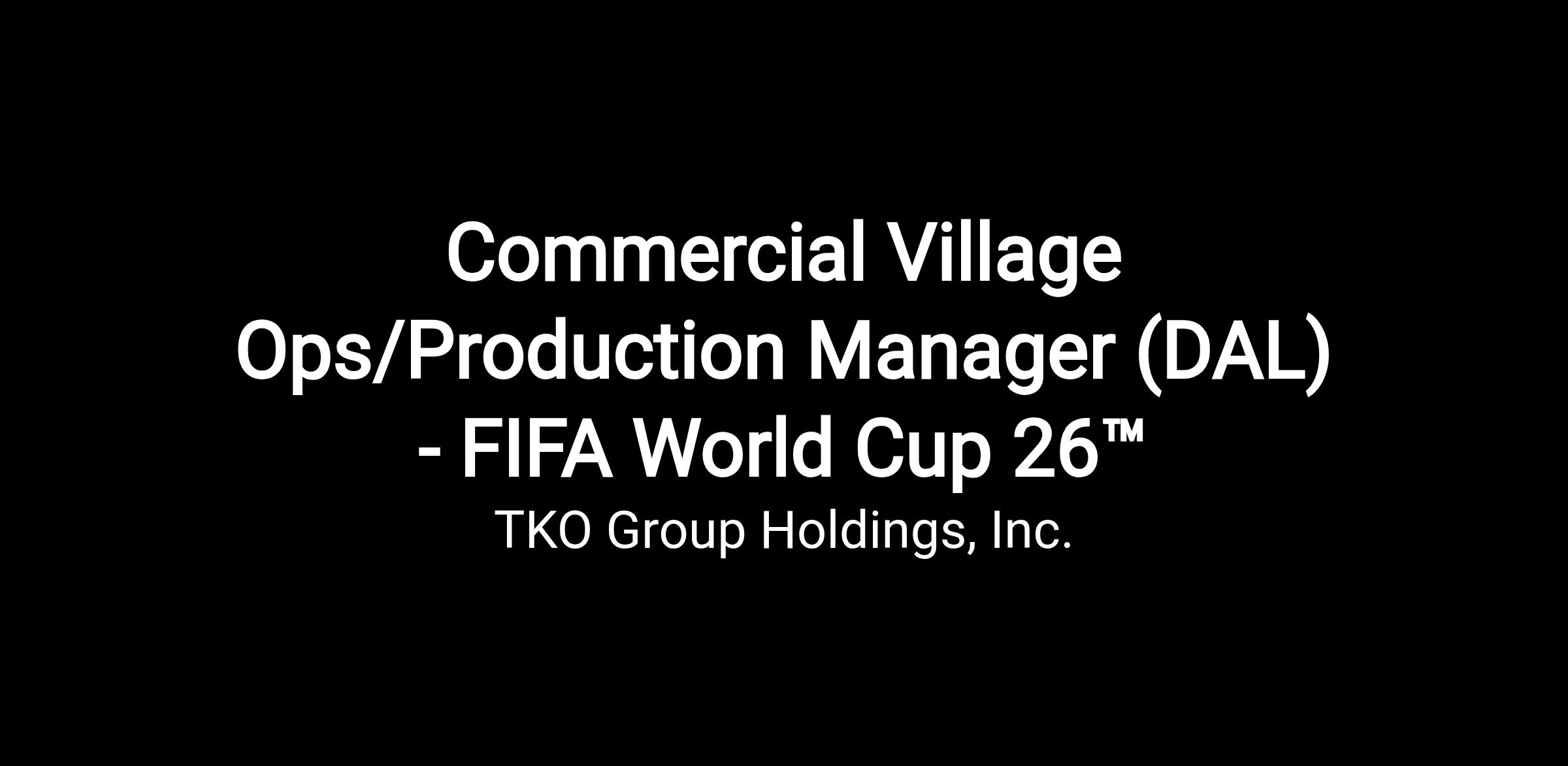 Reporting directly to the Venue Infrastructure Manager and Venue Manager, the Commercial Village Operations/Production Manager will be a key member of the FIFA World Cup 2026™ Venue Management team with On Location and work in close collaboration with the Infrastructure and Venue Management Teams, focusing primarily on the Commercial Village at the stadium
