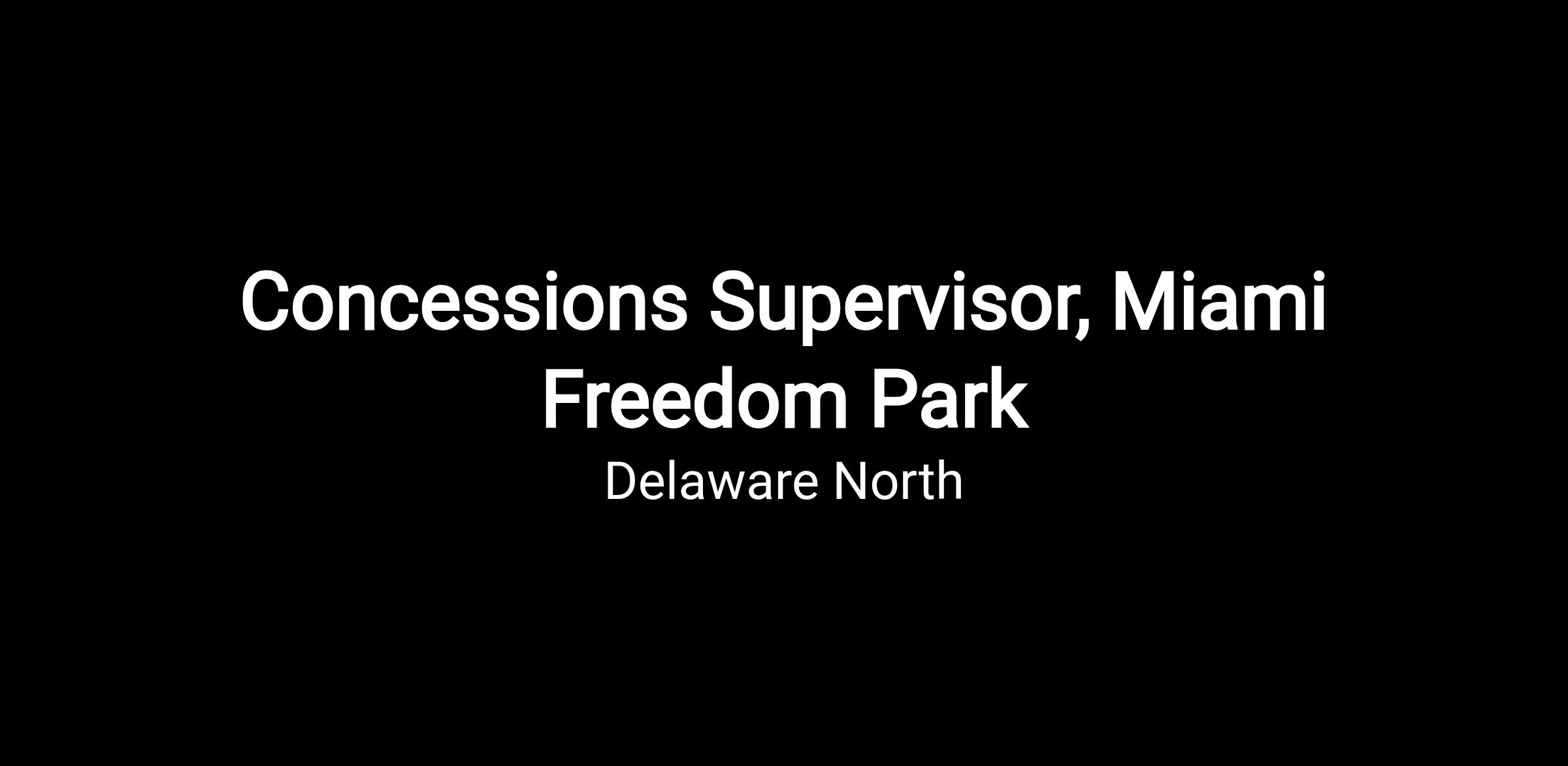 Delaware North Sportservice is hiring seasonal Concessions Supervisors to join our team at Miami Freedom Park in Miami, Florida. As a Concessions Supervisor, you will be responsible for leading team members to provide exceptional guest service.