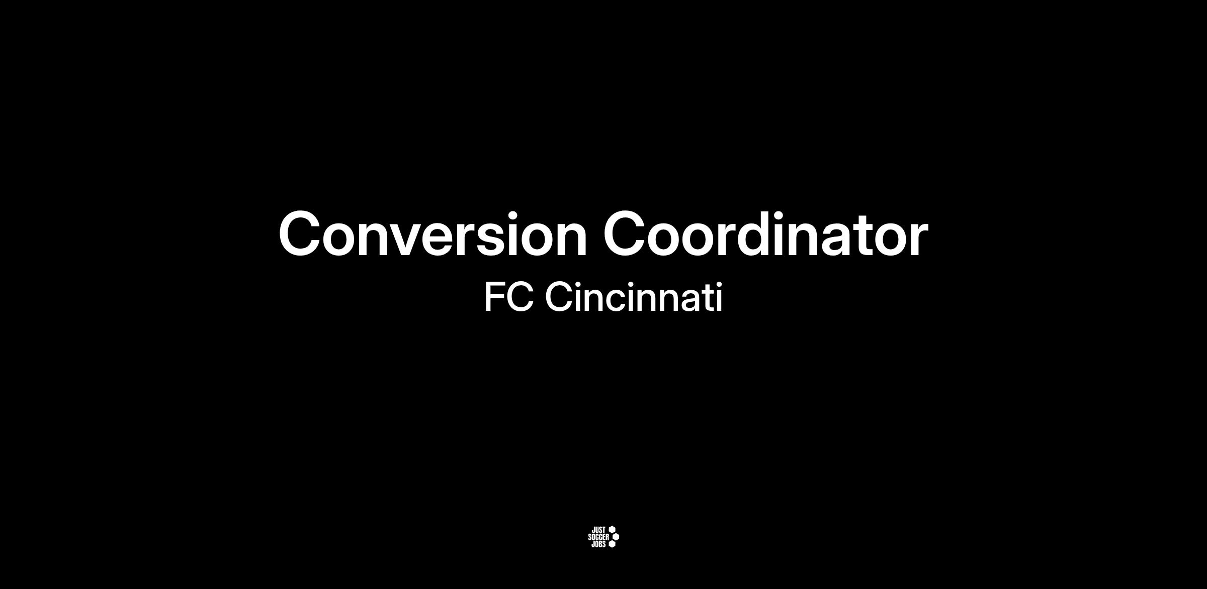 Position Summary: In this part-time role as Conversion Coordinator, you will report to the Manager of Housekeeping & Conversion Operations for FC Cincinnati. This role will have an average of 30 hours/week including nights and weekends, with days fluctuating depending on special event and match schedule. You will be primarily based out of TQL Stadium located at 1501 Central Pkwy, Cincinnati, OH 45214, with opportunities to travel to our 4th St Offices, located in downtown Cincinnati, and our Mercy Health Training Center, located in Milford, OH.