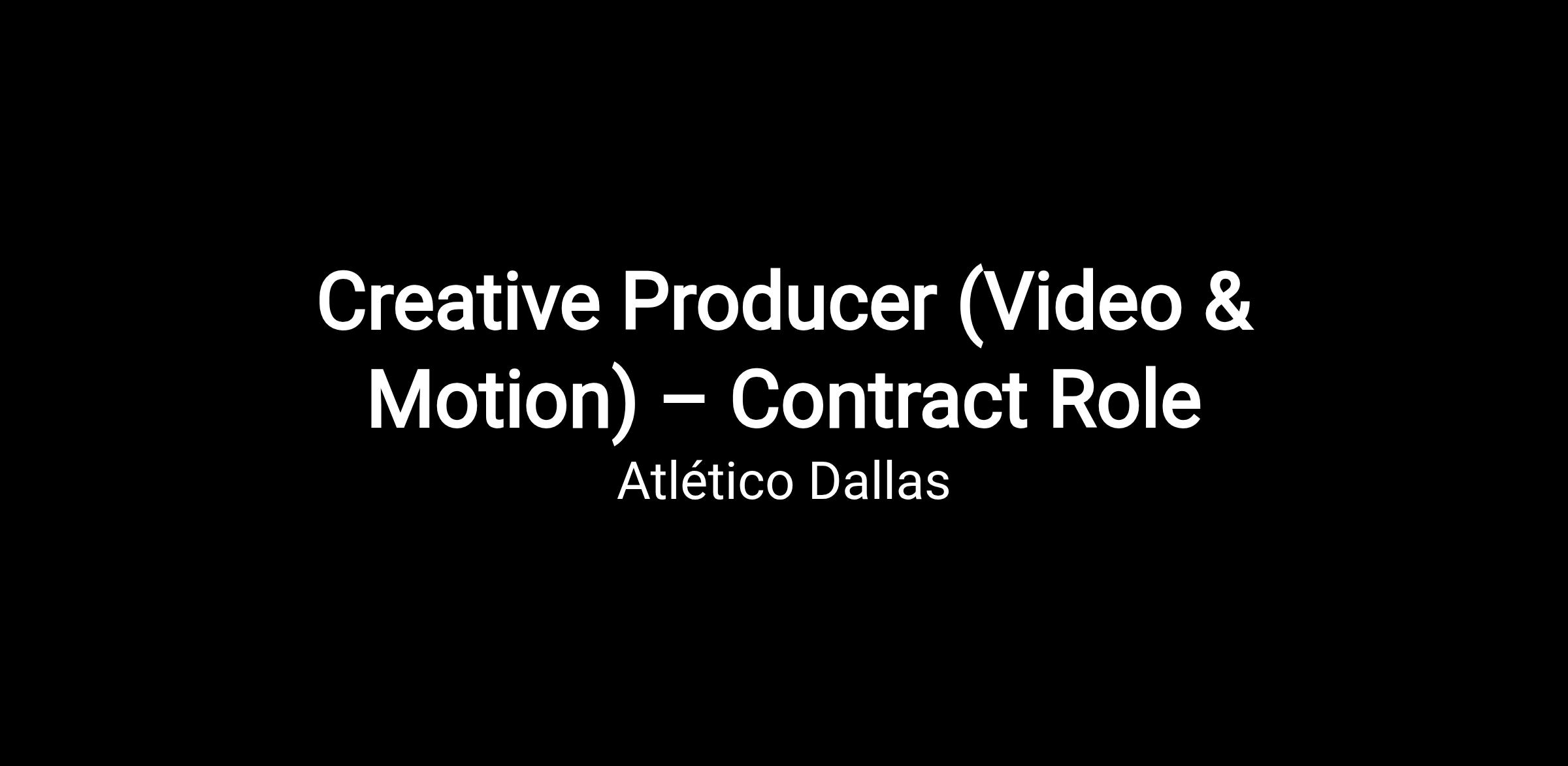 Atlético Dallas is building something special in the heart of Texas. Atlético Dallas is more than a soccer club; we’re a reflection of our city’s grit, heart, and unstoppable spirit. From the streets of Oak Cliff to the lights of the Cotton Bowl, we’re building a club that belongs to Dallas and everyone who calls it home. Atlético Dallas is the city’s newest professional soccer club, set to make its USL debut in 2027. We are looking for a Creative Producer to help bring our brand to life through video, motion, and storytelling.