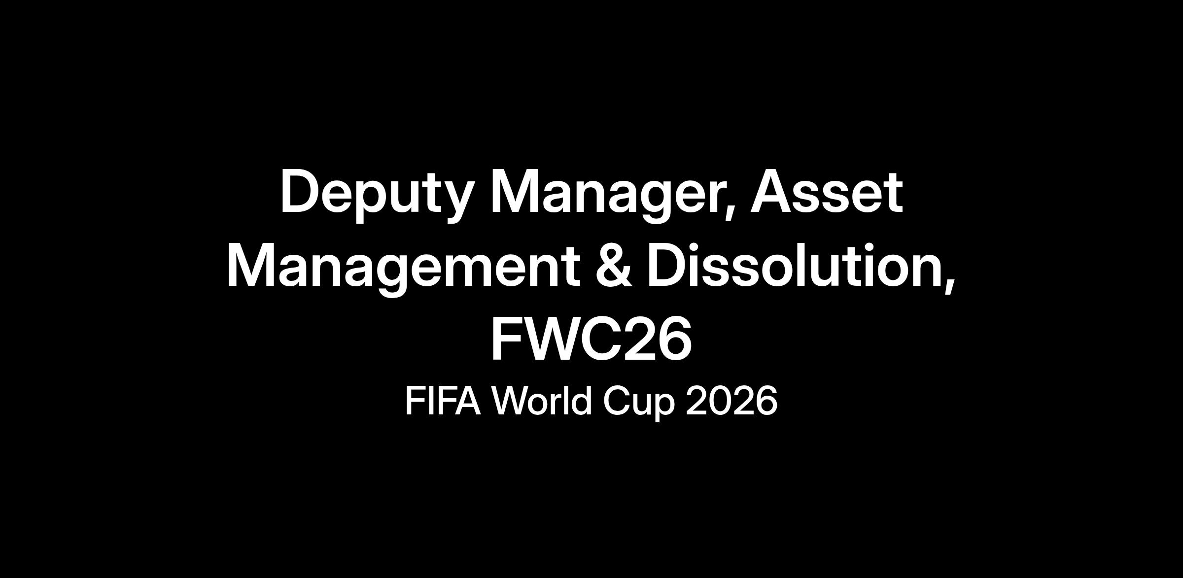 Reporting to the Procurement and Dissolution Logistics Manager, the Manager Asset Control & Dissolution will support the asset management, documentation, and dissolution processes for FIFA World Cup 2026, and other related FIFA events.