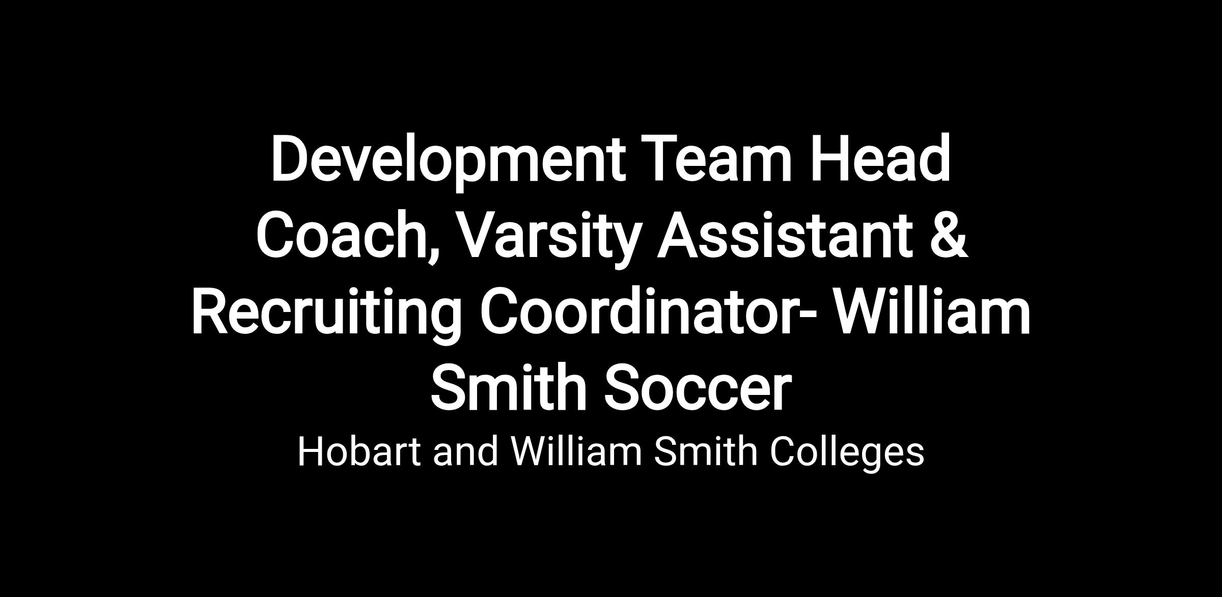 Development Team Head Coach, Varsity Assistant & Recruiting Coordinator- William Smith Soccer