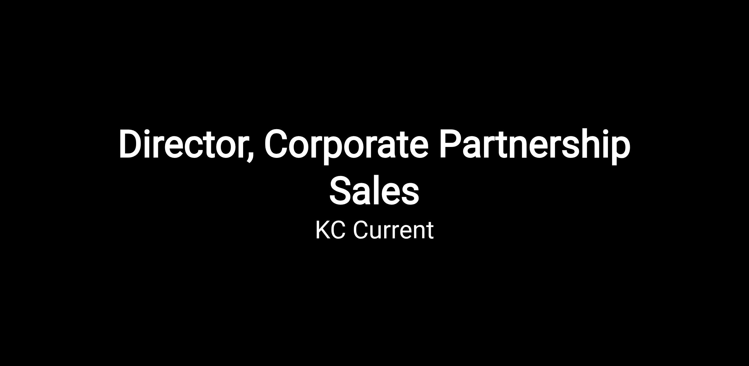 The KC Current is seeking a Director, Corporate Partnership Sales, with a strong passion for sales and sports. This person will be responsible for generating partnership revenue, as well as, generating leads through prospecting, cold-calling, face-to-face meetings, and relationship building. The Director, Corporate Partnership Sales will report to the Vice President, Corporate Partnerships. This person will be a member of the corporate partnership team, assisting leaders of the department with identifying new corporate partnership business opportunities. The Director, Corporate Partnership Sales will also cultivate strong relationships and drive revenue by renewing and growing the organization’s existing partnership business.