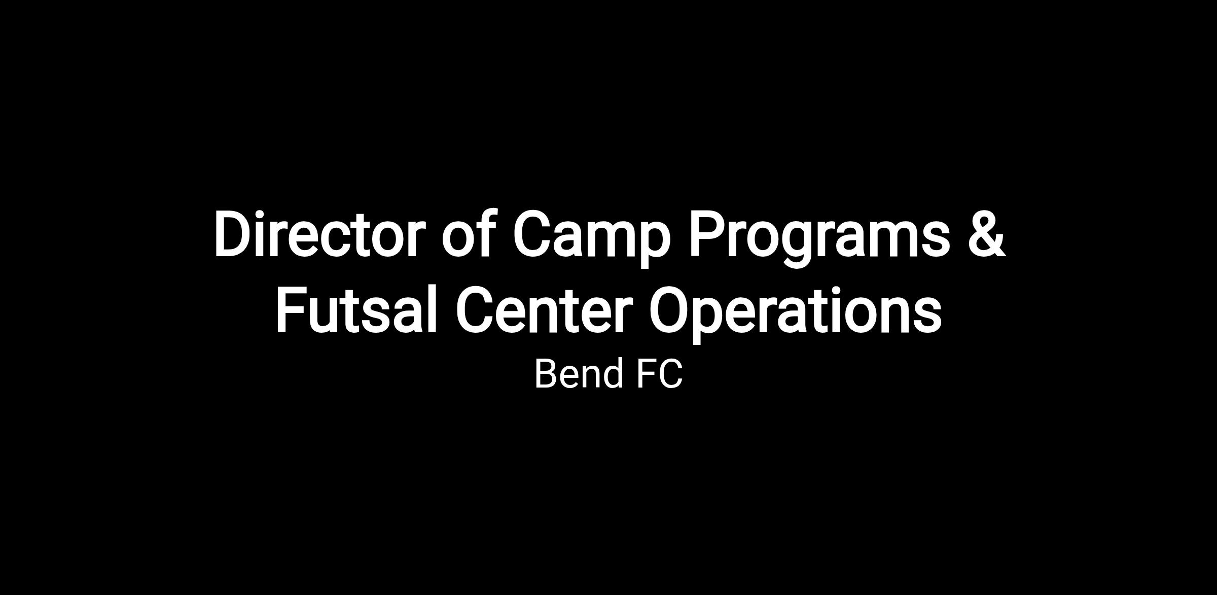 Job Title: Director of Camp Programs & Futsal Center Operations Organization: Bend FC (501c3 Nonprofit Soccer Club – Central Oregon) Reports To: ED and DOC