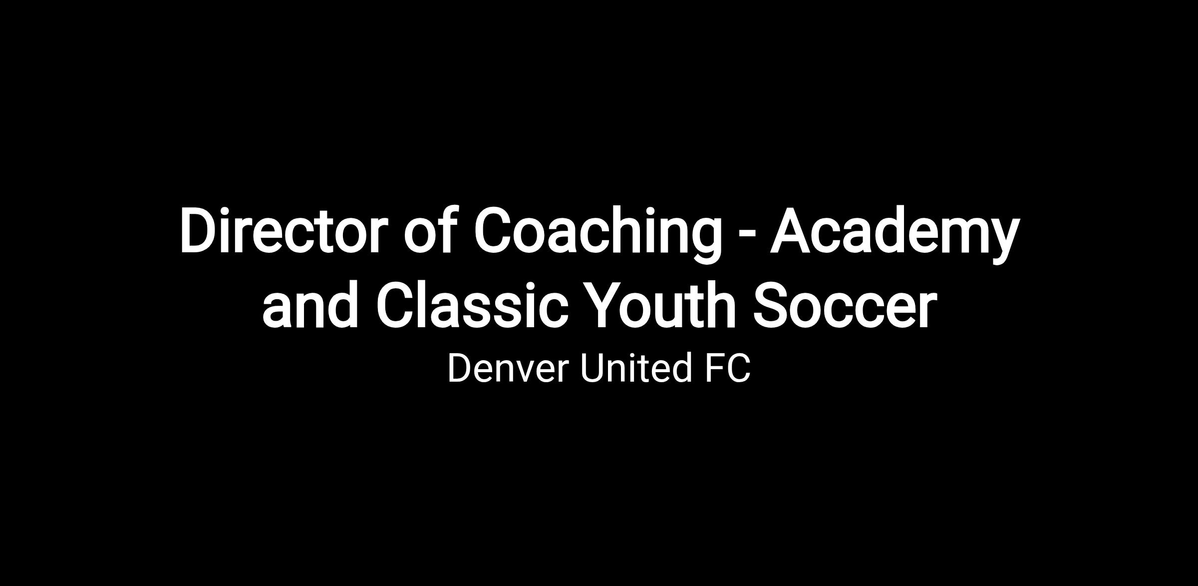 Denver United FC is seeking an experienced and motivated Director of Coaching to lead the club’s player development programs, oversee coaching staff, and implement high-quality training methodologies aligned with the club’s vision and philosophy.