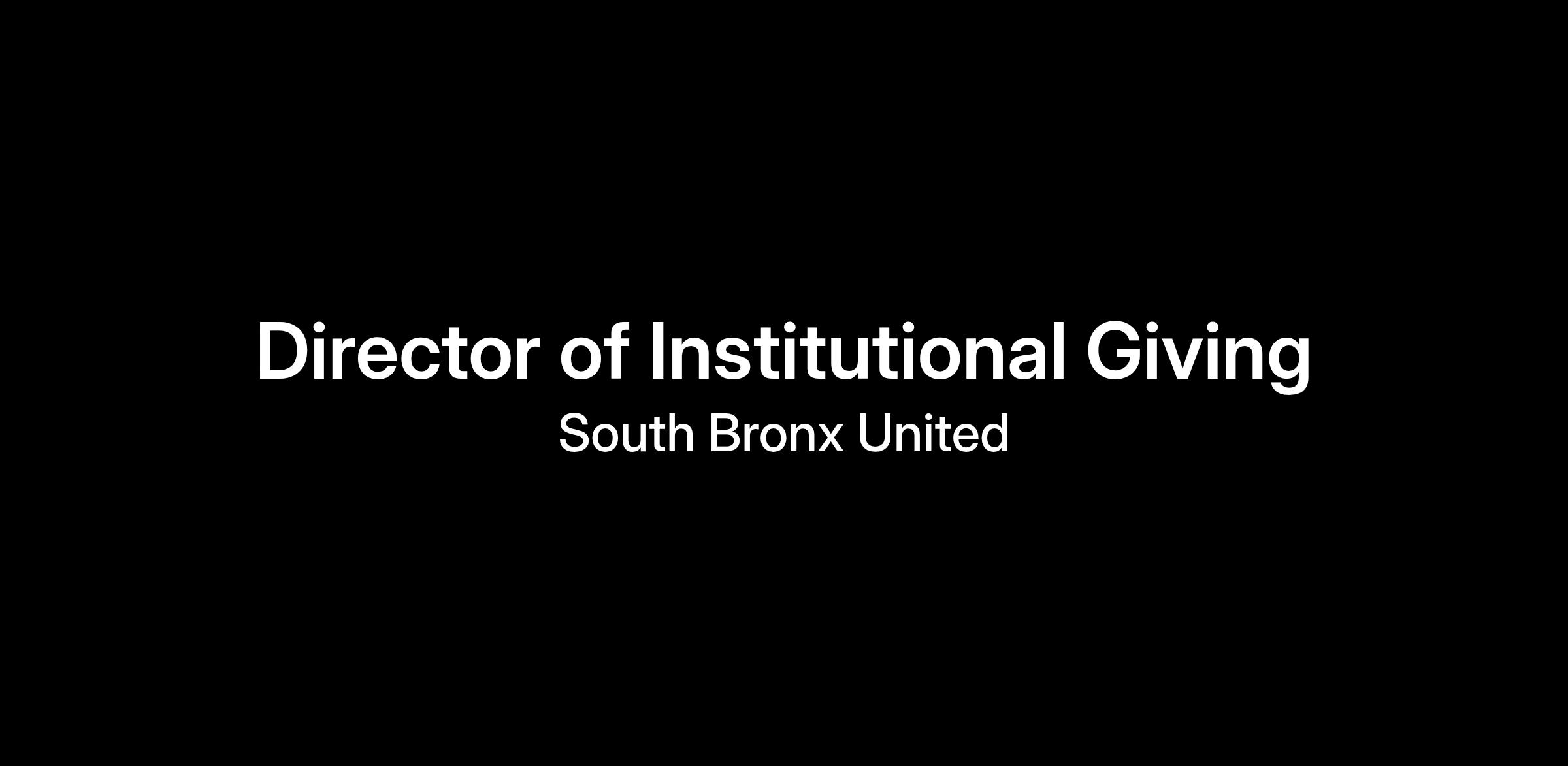Send a cover letter specific to this position with a resume and subject line: “Director of Institutional Giving” to hiring@southbronxunited.org