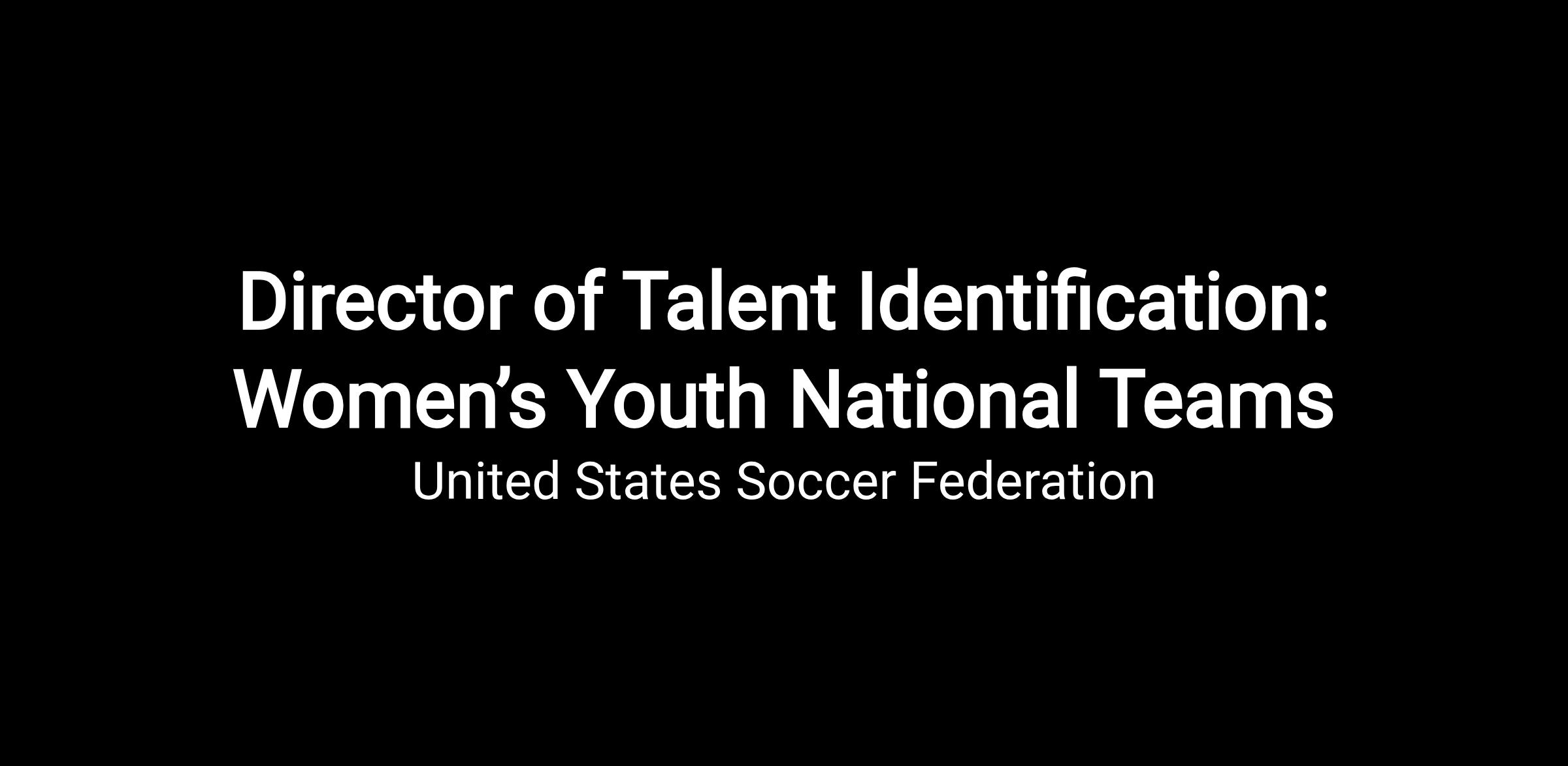 The Director of Talent Identification: Women’s Youth National Teams is responsible for the development and oversight of a comprehensive and aligned Talent ID plan, effectively applying the mission, objectives, strategies, and tactics to identify the next generation of future women’s national team stars. This person is responsible for leading and guiding the Women’s Talent ID Regional Managers, while cultivating a collaborative and inclusive culture.