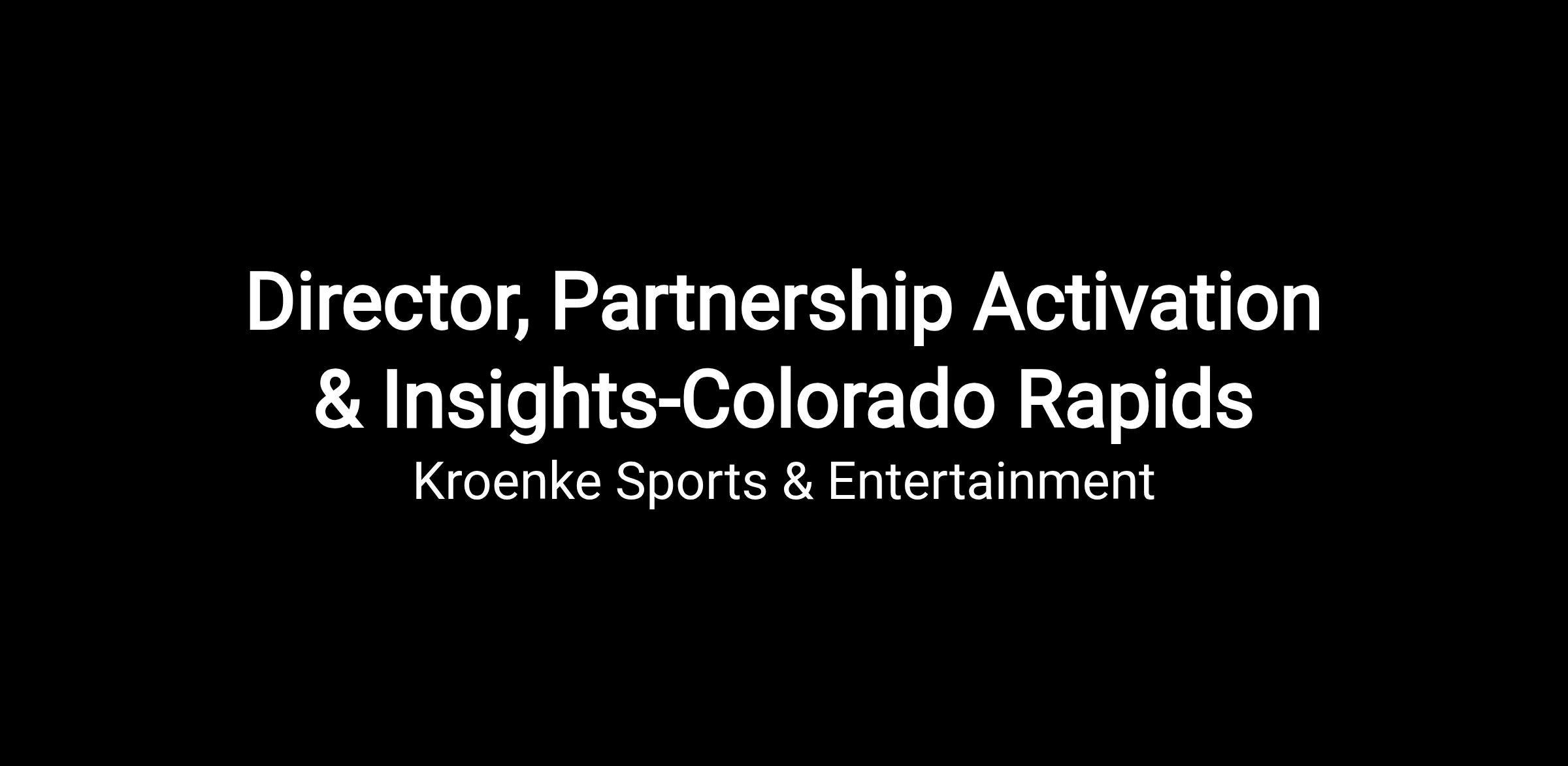 - Activation Leadership: Lead all activation efforts for new and existing partnerships, ensuring each partnership is thoughtfully and meaningfully executed to align with the Colorado Rapids brand, drive fan engagement and growth, and deliver measurable value that supports both partner objectives and long-term relationship success.
