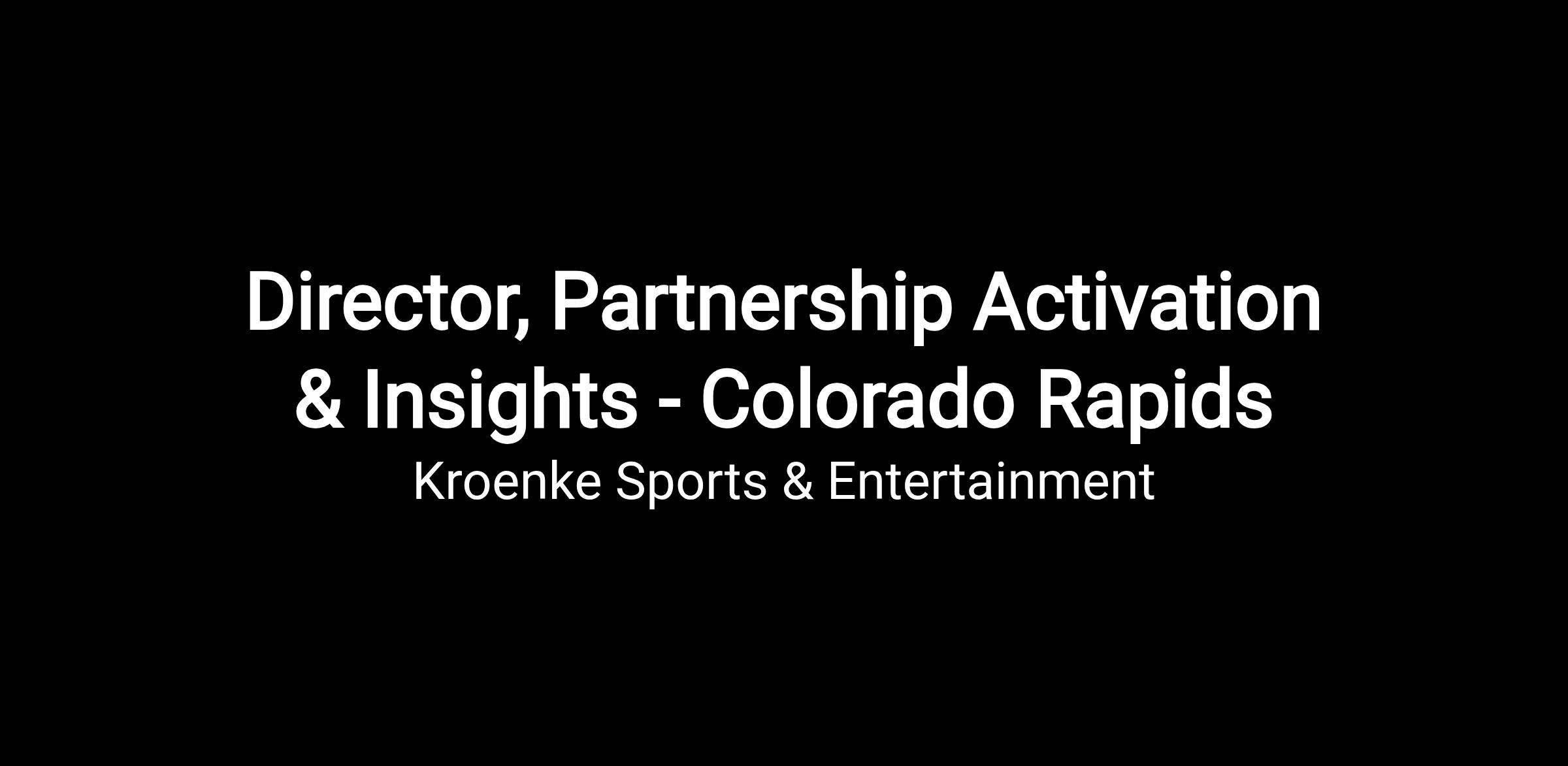- Activation Leadership: Lead all activation efforts for new and existing partnerships, ensuring each partnership is thoughtfully and meaningfully executed to align with the Colorado Rapids brand, drive fan engagement and growth, and deliver measurable value that supports both partner objectives and long-term relationship success.