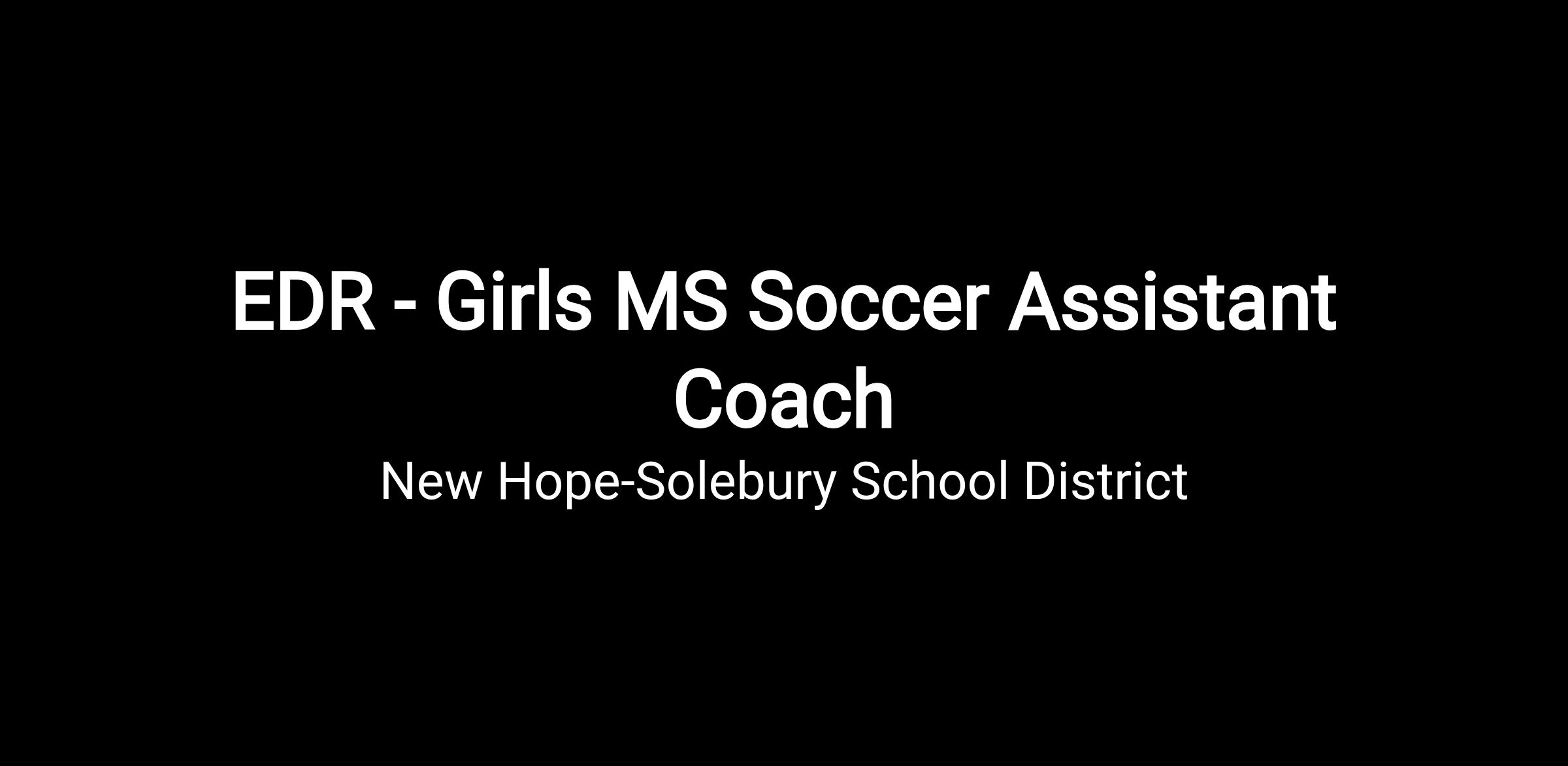 New Hope-Solebury School District is seeking and accepting applications for a Girls Soccer Assistant Coach (8th Grade) who will also serve as the Girls Soccer Head Coach (7th Grade) at our Middle School. Candidates should have coaching experience.