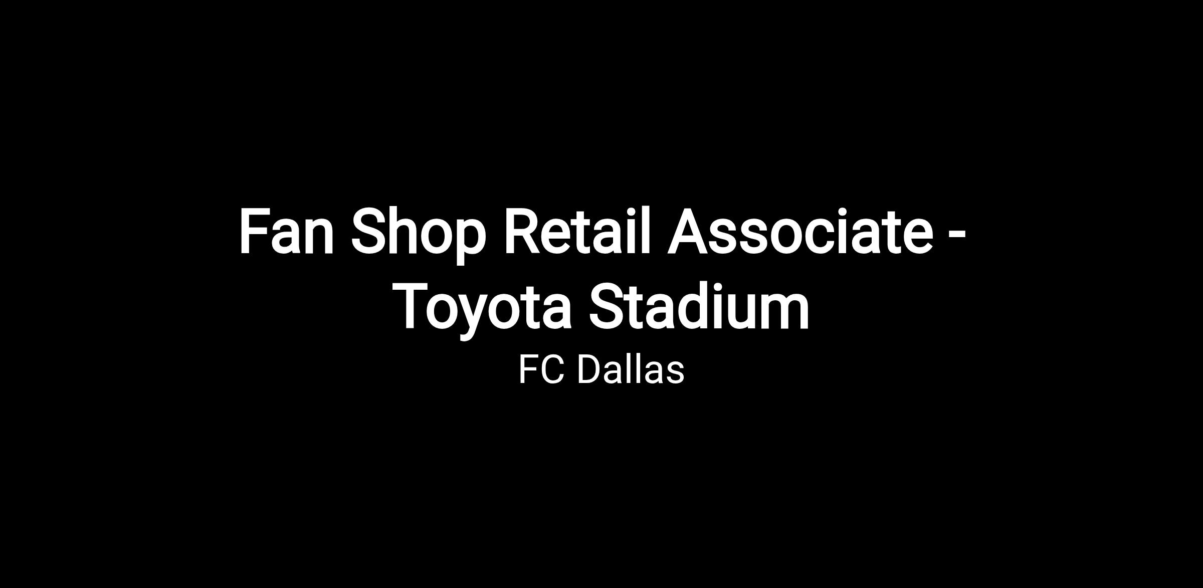 As an FC Dallas Retail Sales Associate, you will be responsible for providing first rate shopping experience at all locations throughout Toyota Stadium. This is a part time/as-needed position, scheduling needs will be based around events held at the stadium, complex and facility. You will enjoy a flexible schedule, a wide variety of events and a great work environment!