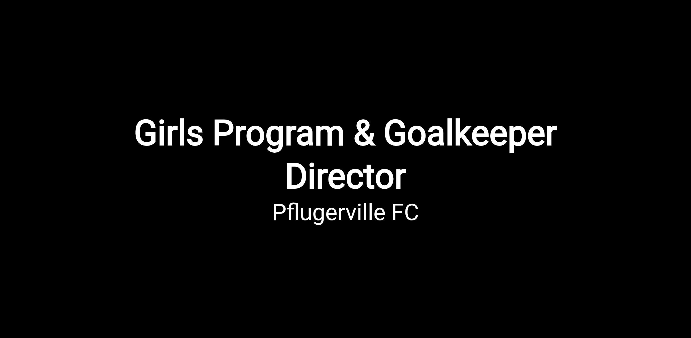 The Girls Program & Goalkeeper Director at Pflugerville FC is responsible for leading the overall development, structure, and performance of the girls program (Academy through Select) while also overseeing and implementing the club’s goalkeeper program across all age groups.