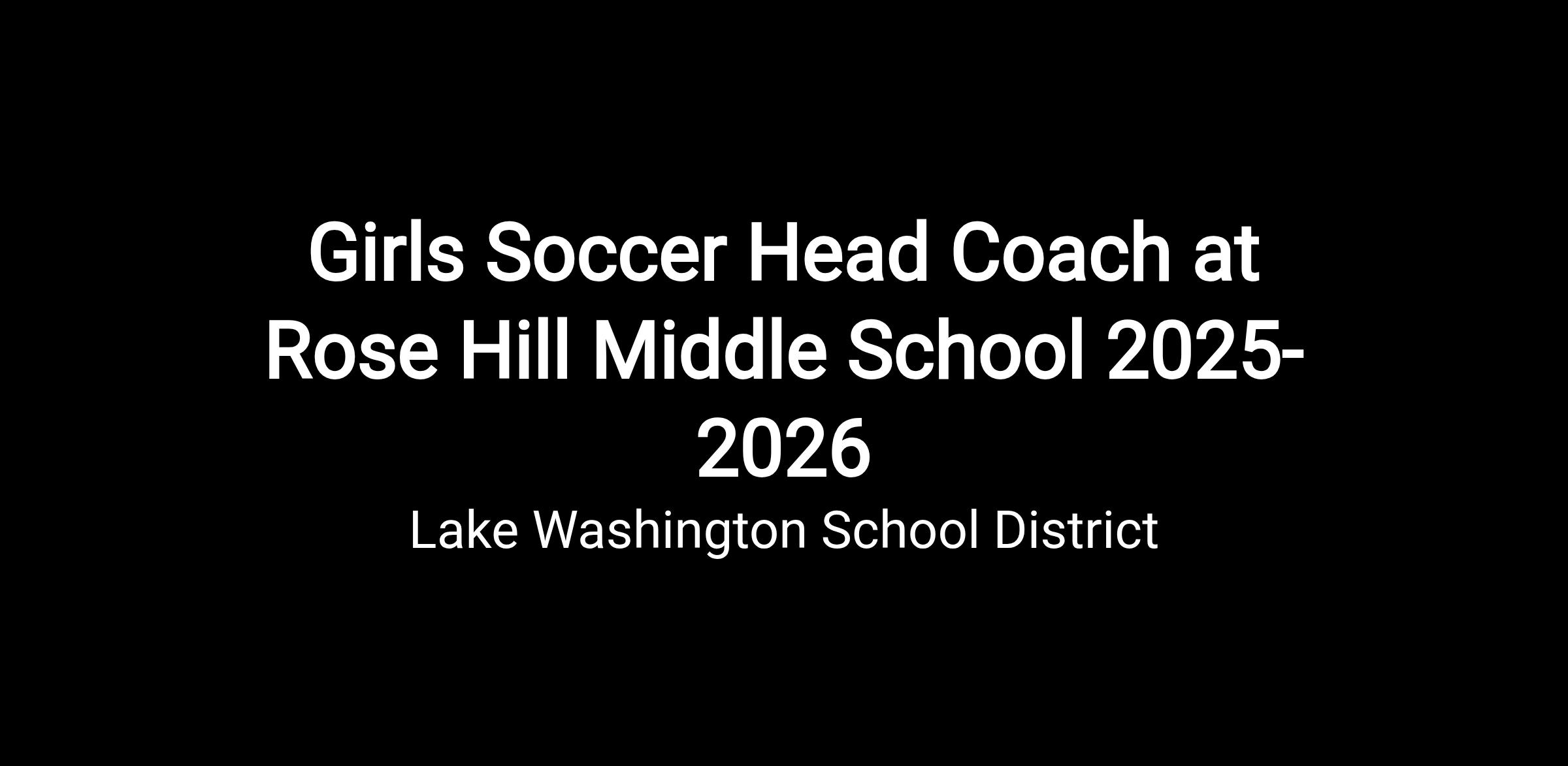 Rose Hill Middle School (within the Lake Washington Learning Community) is seeking qualified candidates for a position as a Girls Soccer Varsity Head Coach for the 2025-26 school year. This is a head coach level position. Practices 2:30-4pm M-F (except Wednesdays). Seven scheduled games will run longer, typically finishing between 5-6pm. Most practices and games will be held at Grass Lawn Park.