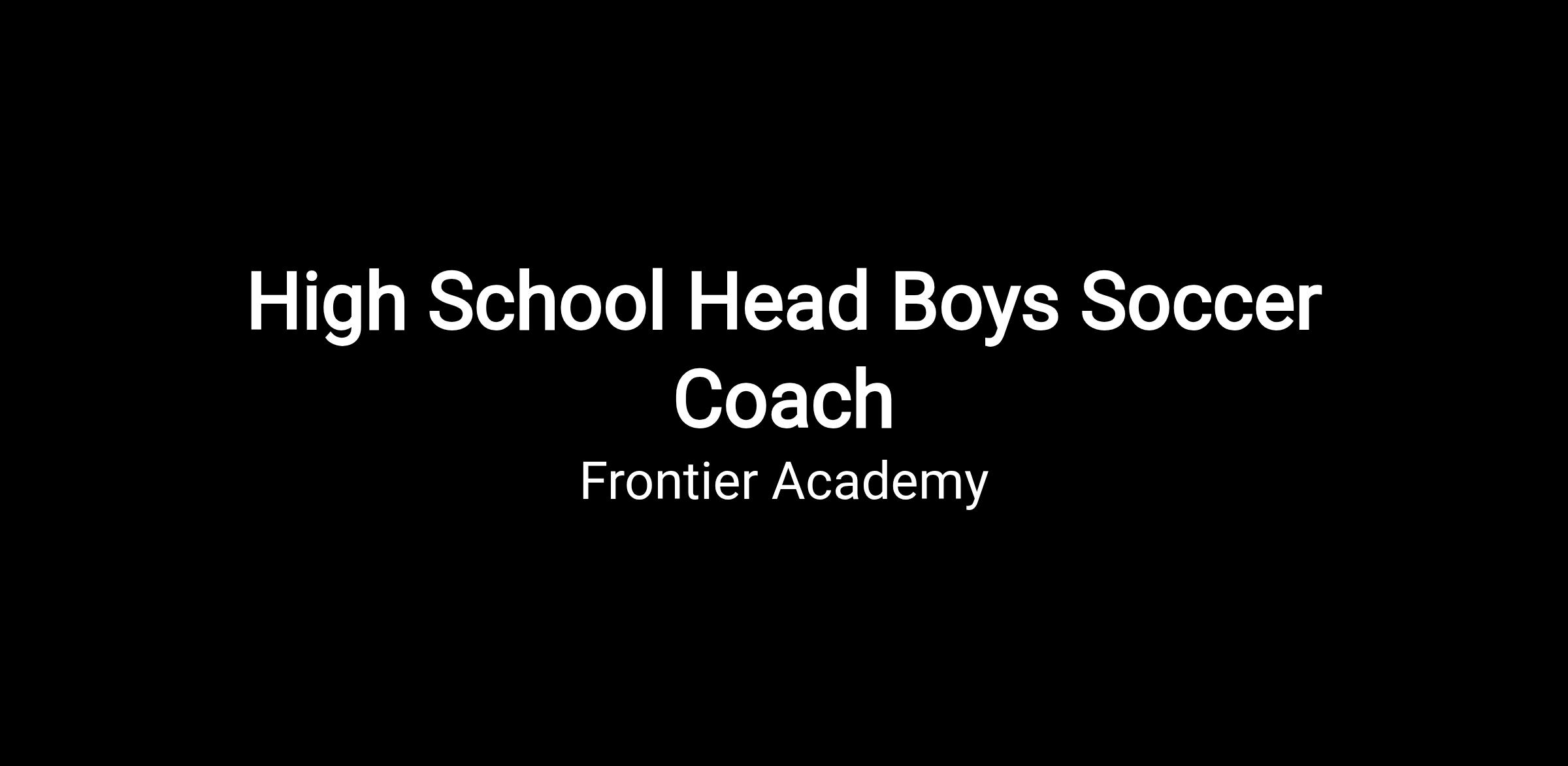 - Frontier Academy High School Head Boys Soccer Coach