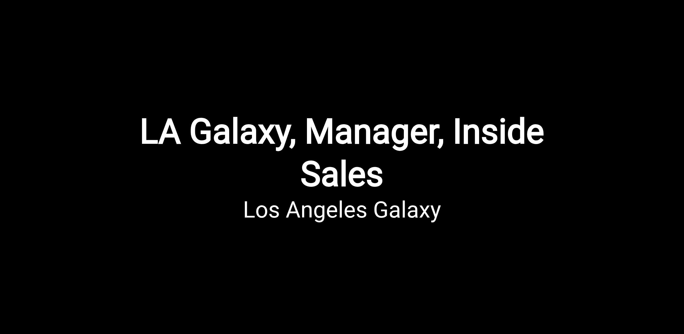 The Inside Sales Manager will lead the team of part-time Inside Sales Representatives (Associates) by recruiting, hiring, training and developing the staff to prepare them for full-time opportunities within our sales department and throughout the company/industry. The Inside Sales team will have aggressive sales goals for LA Galaxy and Dignity Health Sports Park Premium products. Candidate will be expected to exceed goals for all projects, develop our current employees into future leaders of our company, and recruit new talent to join our organization.