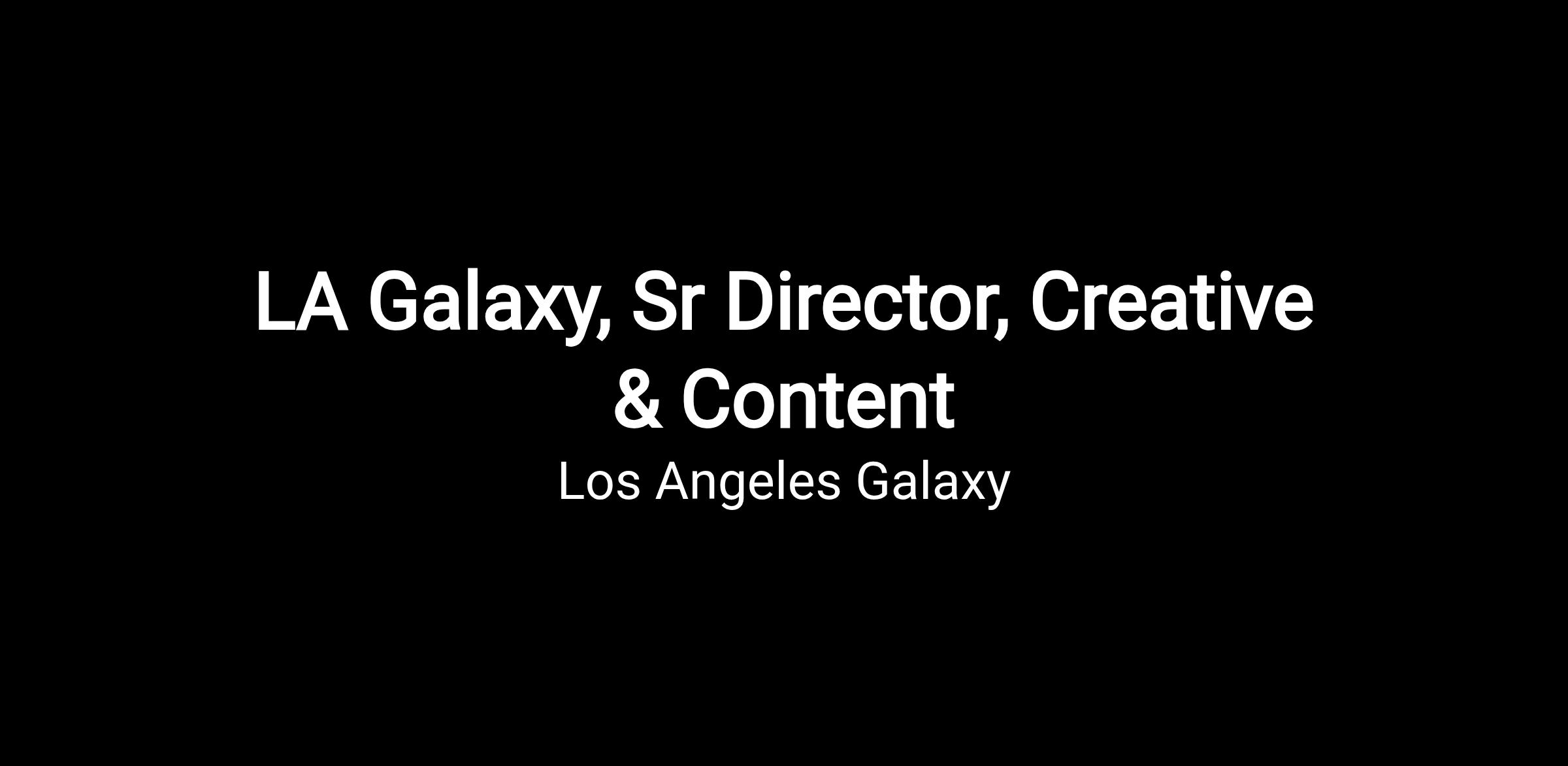 - Oversee the enterprise wide creative and content ecosystem for the LA Galaxy, LA Galaxy II, LA Galaxy Academy, and Dignity Health Sports Park, setting the long term creative vision and ensuring all visual communication aligns with organizational brand, marketing, and business strategies. This includes executive leadership of all creative concepts across paid advertising (TV, print, radio), online marketing, website, social media, in venue platforms (videoboards, LED ribbons, stadium signage), and event environments (activation spaces, branding, and giveaways).