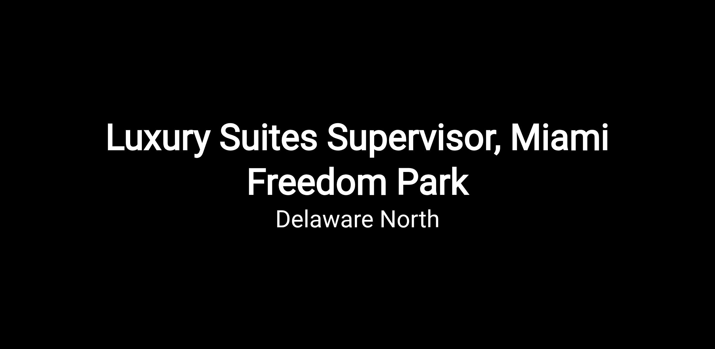 Delaware North Sportservice is hiring seasonal Suites Supervisors to join our team at Miami Freedom Park in Miami, Florida. As a Suites Supervisor, you will be responsible for ensuring all food service and hospitality operations are efficiently carried out while providing an exemplary guest experience.