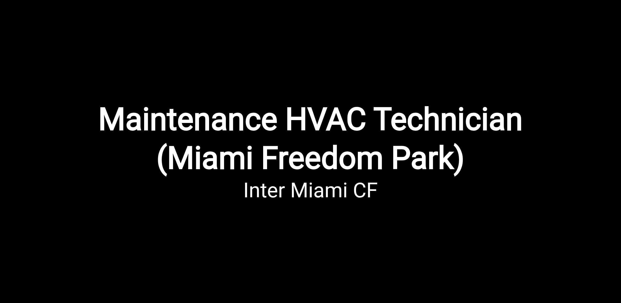 Inter Miami CF is seeking an experienced Maintenance HVAC Technician to support stadium and facility operations. This position is responsible for ensuring reliable performance of HVAC systems that support player areas, offices, hospitality spaces, concourses, and event environments.