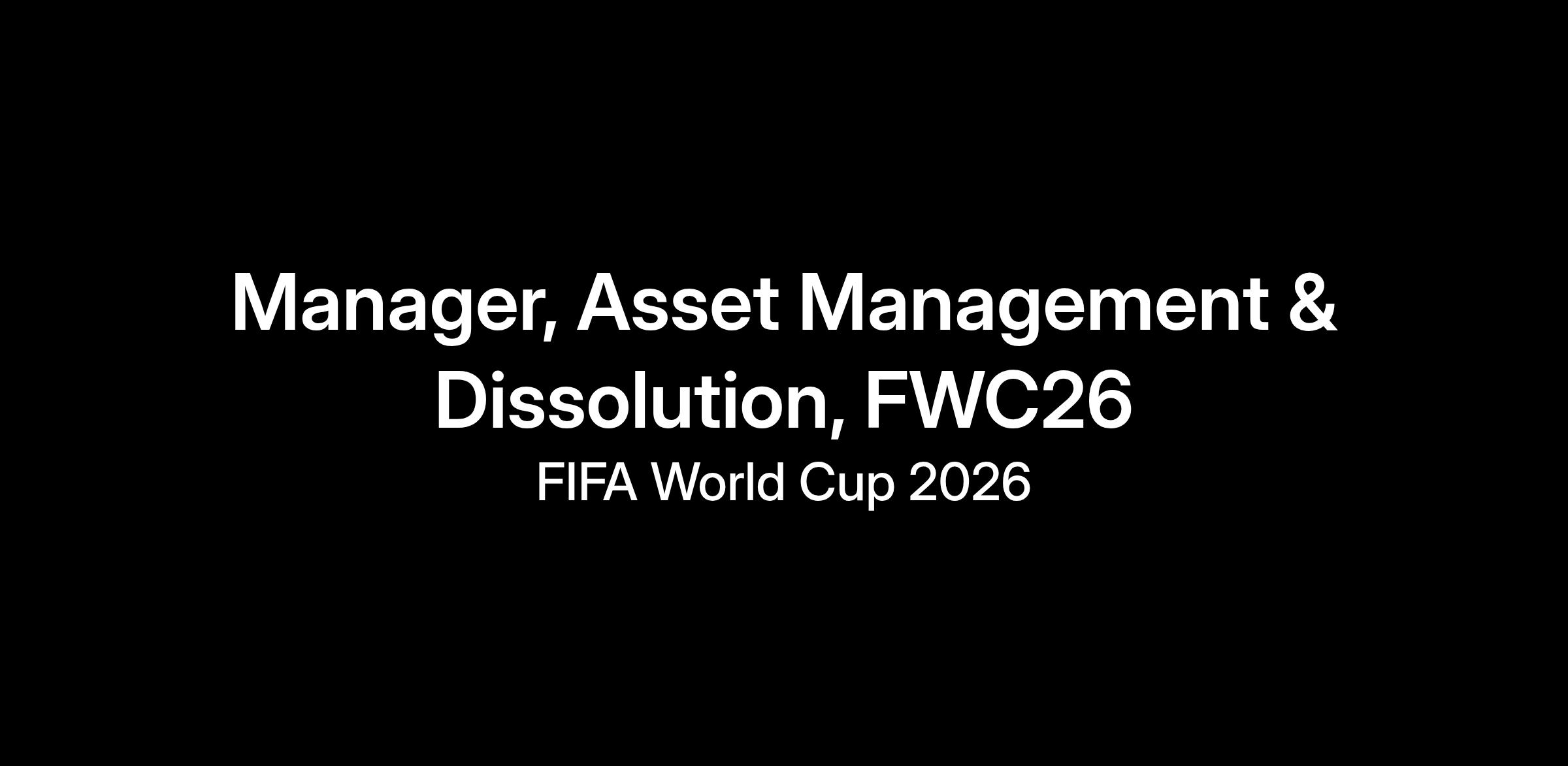 Manager, Asset Management & Dissolution, FWC26