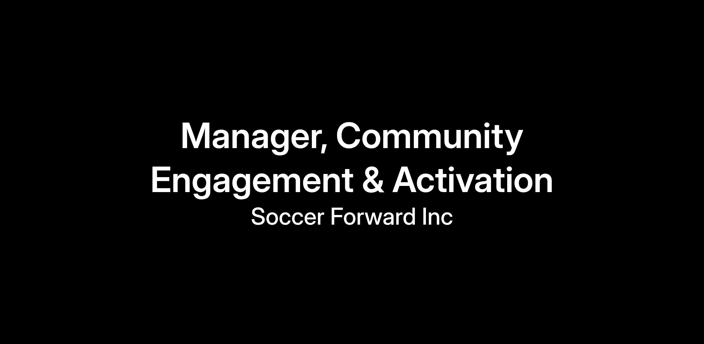 The Manager, Community Engagement & Activation will play a key role in developing and executing Soccer Forward’s grassroots and community-focused initiatives. This position will be responsible for managing partnerships with national and local community-based organizations and leading community events leading up to U.S. Men’s, Women’s and Extended National Team matches in key markets. The Manager will work closely with U.S. Soccer membership organizations, clubs, leagues, and partners to drive engagement through matchday activations, community programming, special events, and national campaigns.