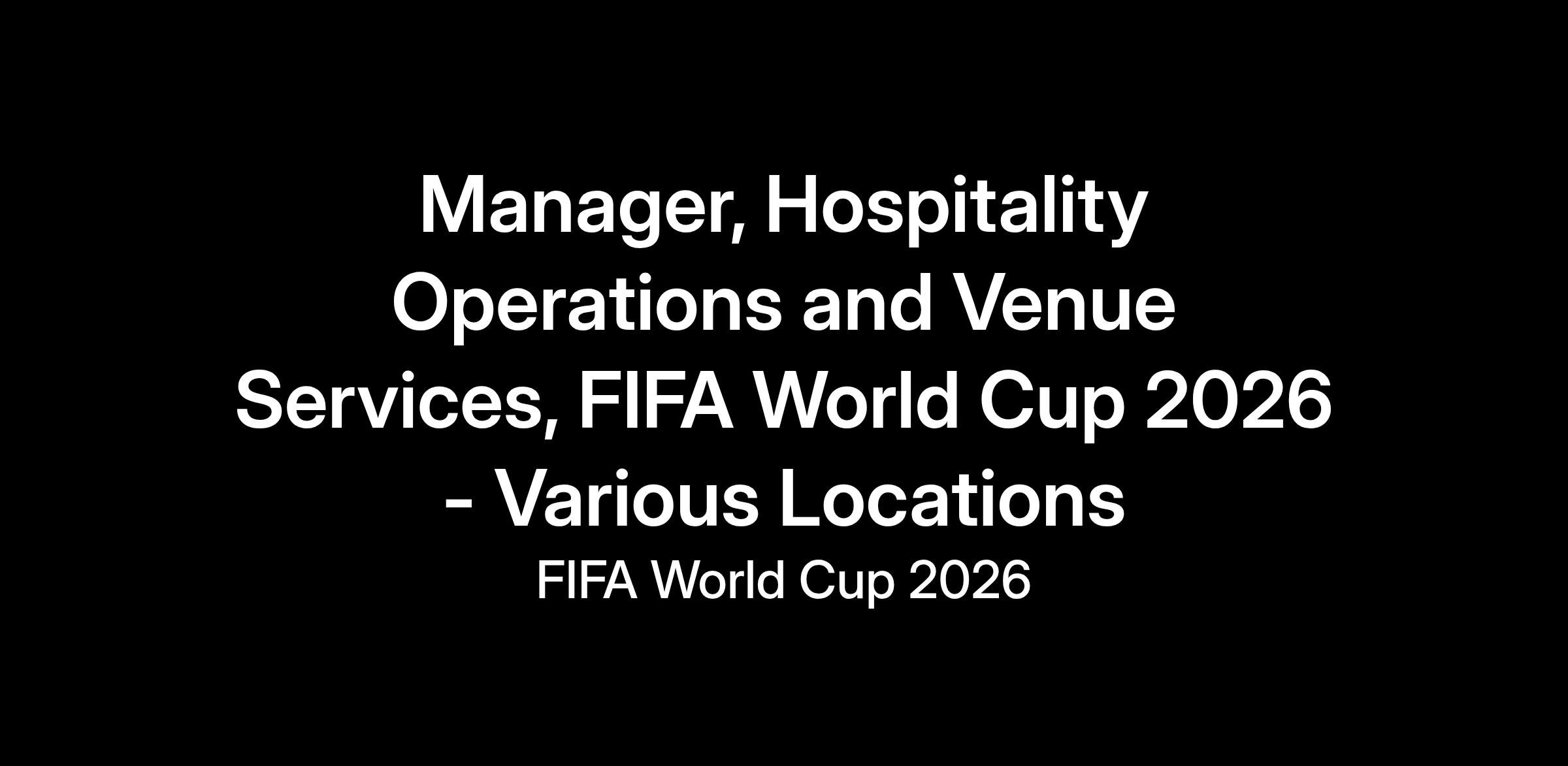 THE POSITION Reporting organisationally to the Head of Hospitality Operations, the Hospitality Operations and Venue Services Manager will be a key member of the FIFA World Cup 2026™ Hospitality Team, and work in close collaboration with the Hospitality Department and other key functional areas and key individuals responsible for providing full support for the successful implementation of Hospitality project. This role will be responsible for supporting the delivery and operations of the FIFA Hospitality Programme in the stadium, establishing and ensuring an effective working relationship between FIFA’s various functional areas, the stadium authorities and staff, and the Official Hospitality Provider (On Location) operational teams.