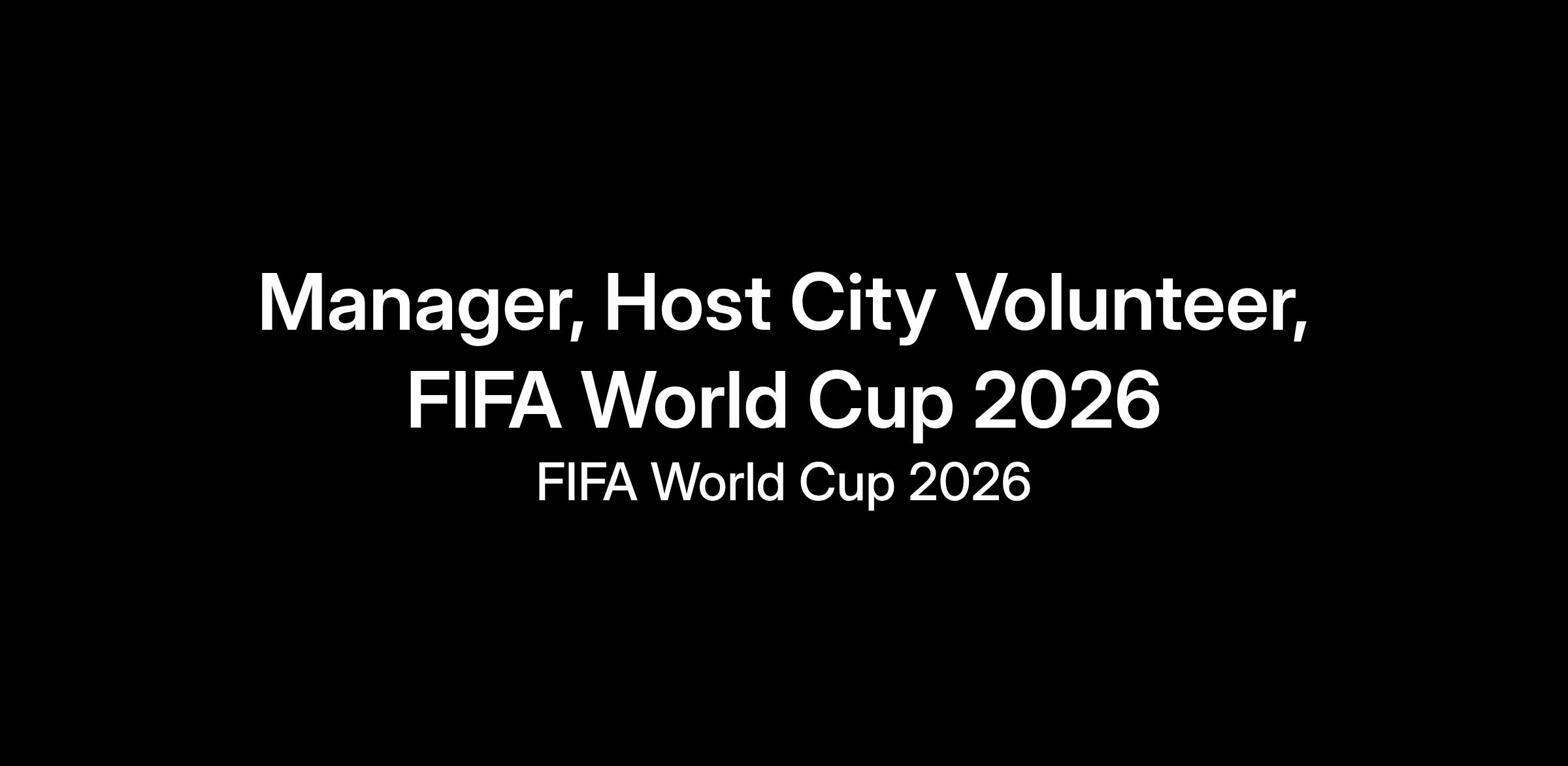 Reporting organizationally to the Country Senior Manager, the Host City, Volunteer Manager will help serve Volunteer efforts for the FIFA Club World Cup 2025TM and FIFA World Cup 2026TM that for the first time ever, is hosting 48 teams and 1,200+ players across 3 countries and 16 cities. This role will be responsible for driving the end-2-end volunteer journey at a Host City level, with a planning and operational focus on recruitment, training and Tournament delivery phases alongside the overarching management of the volunteer experience. The successful candidate will work in close collaboration with the wider FWC26 Volunteer Team to implement the wider FWC 2026 Volunteer strategy, alongside each specific Host City volunteer lead, ensuring a coordinated integrated approach and overall program effectiveness.