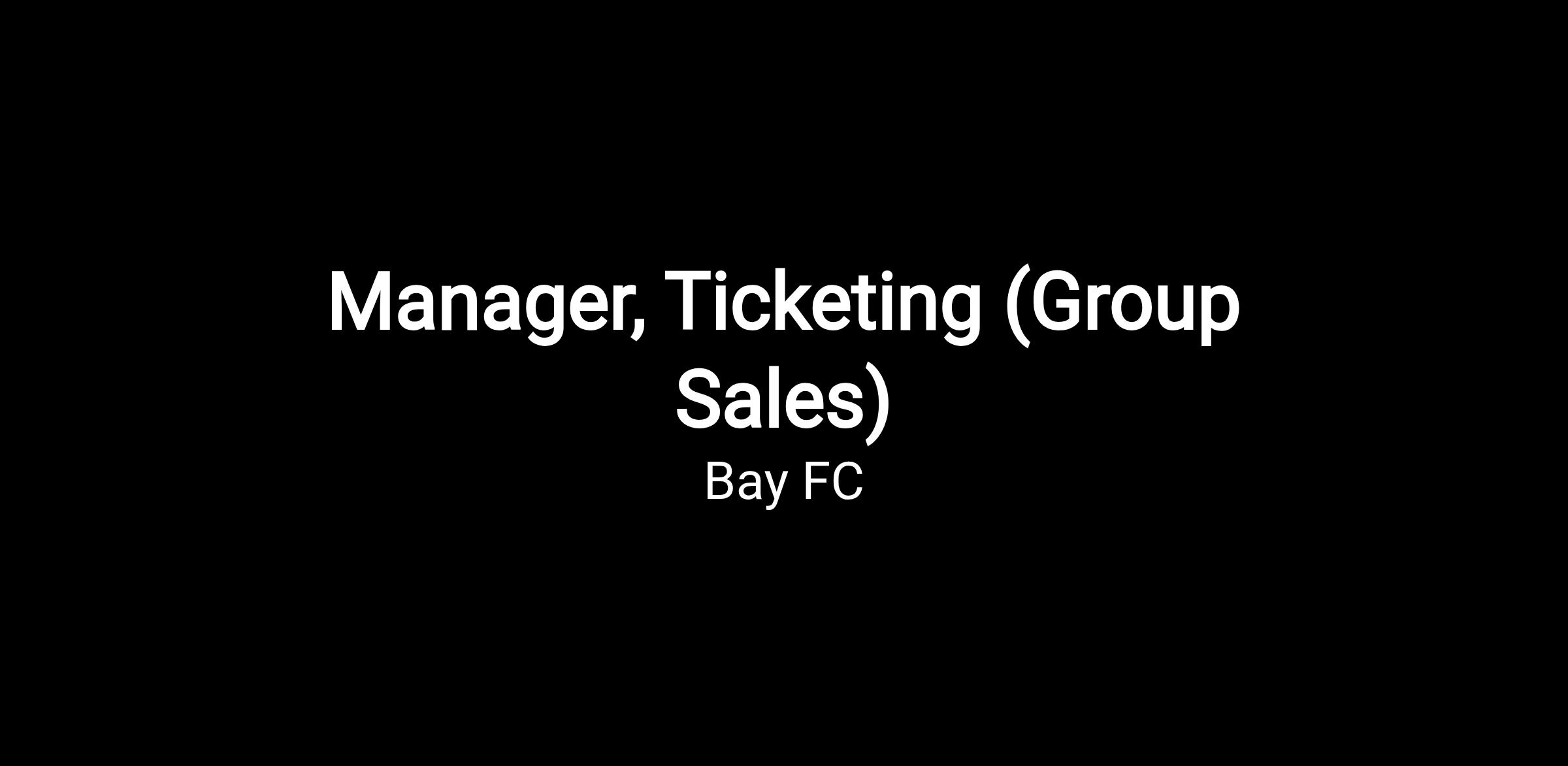 Bay FC is seeking a Manager, Ticketing (Group Sales) to join our team. The ideal candidate is a motivated sales leader with a passion for creating memorable fan experiences and building meaningful relationships within the community. This role is responsible for generating revenue through group ticket sales, developing new business opportunities, and leading strategic initiatives that expand Bay FC's presence throughout the Bay Area.