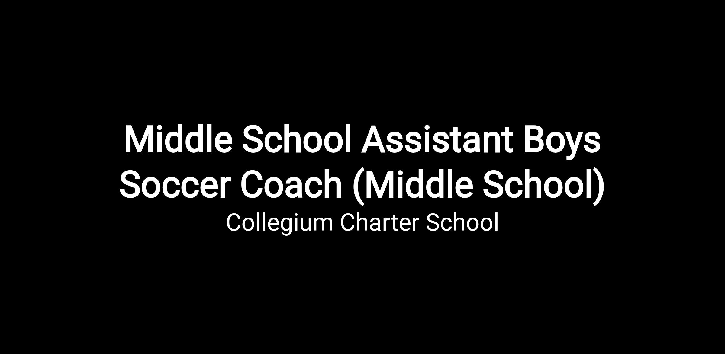 Collegium Charter School (CCS) is seeking a qualified, seasonal Assistant Coach Boys Soccer Coach candidate for the Middle School level. Successful candidates will have knowledge of soccer and will demonstrate effective coaching technique, leadership and mentoring skills; the ability to relate well within the school community; and the desire to provide an atmosphere conducive to good sportsmanship and high standards. Qualified candidates will enhance the School's commitment to diversity and inclusivity and will be committed to the School's Vision and Mission.