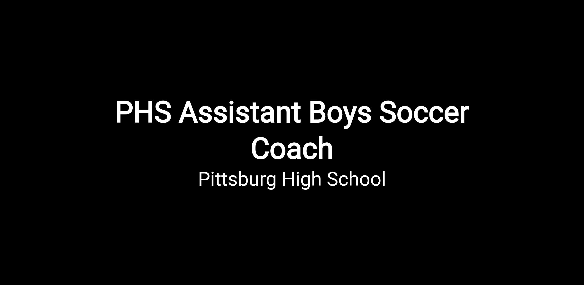 This position is Assistant Boys Soccer Coach at Pittsburg High School. Duties include, but are not limited to:
