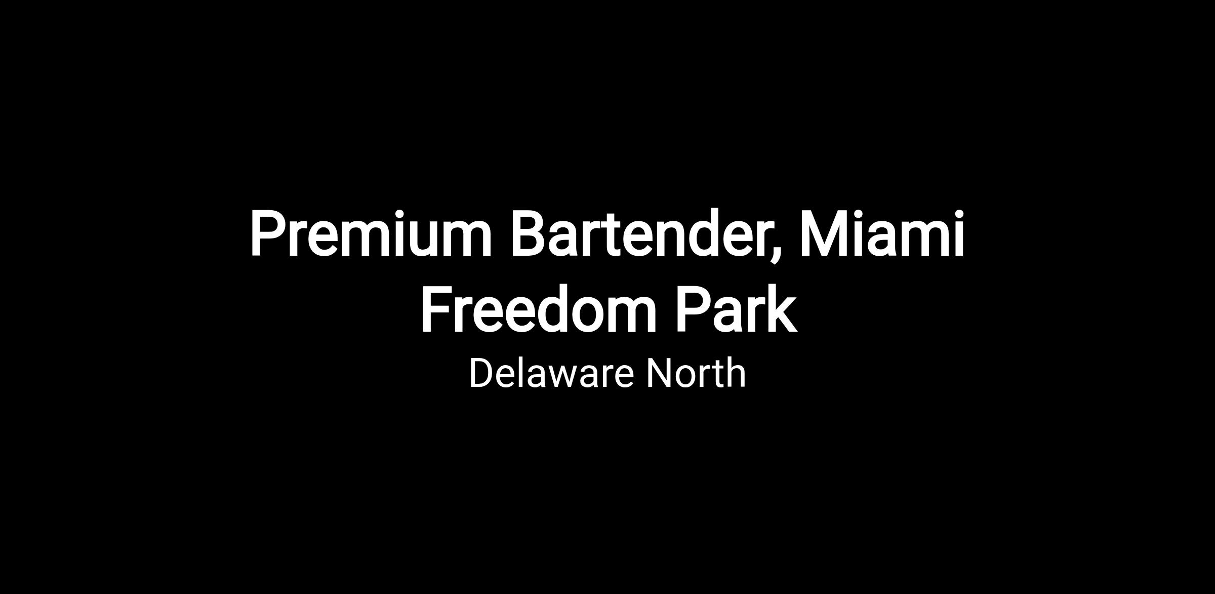 Delaware North Sportservice is hiring seasonal Premium Bartenders to join our team at Miami Freedom Park in Miami, Florida. As a Bartender, you will be responsible for serving alcoholic and non-alcoholic beverages responsibly while providing an excellent guest experience.