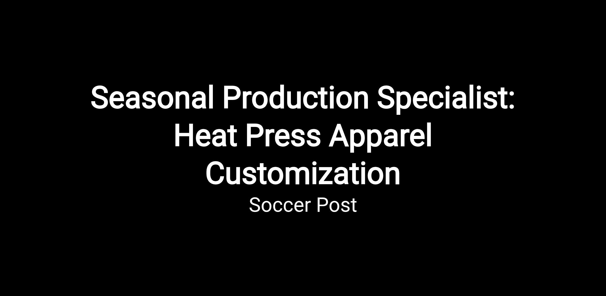 Seasonal Production Specialist: Heat Press Apparel Customization