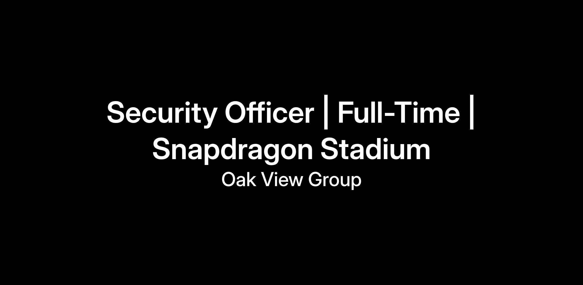 Security Officer is a full-time, hourly position that reports to the Director, Security & Transportation. Security Officers will be responsible for protecting Snapdragon Stadium and visitors, staff and vendors on a 24 hour, 7 day per week basis.