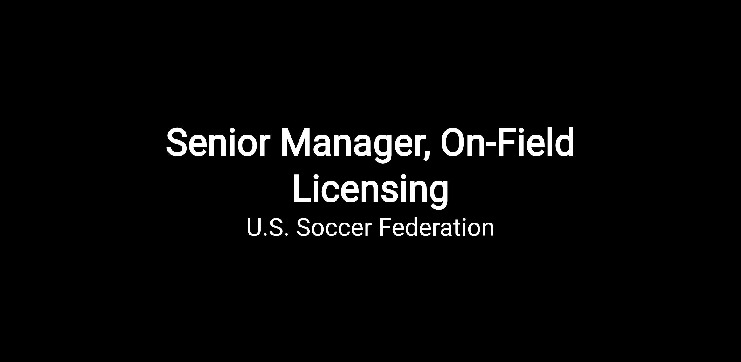 U.S. Soccer is seeking a Senior Manager, On-Field Licensing to join our industry-leading team to help drive the growth of soccer in the United States and be a leader within U.S. Soccer’s growing commercial team. Consumer Products is a key driver of fan engagement and brand messaging. As such it is critical that every product partner and every product line aligns with our fan segments and properly reflects our brand positioning. The ideal candidate is one who is organized, confident, detail oriented, and resourceful. A genuine interest in the overall sports licensing and retail space is key.
