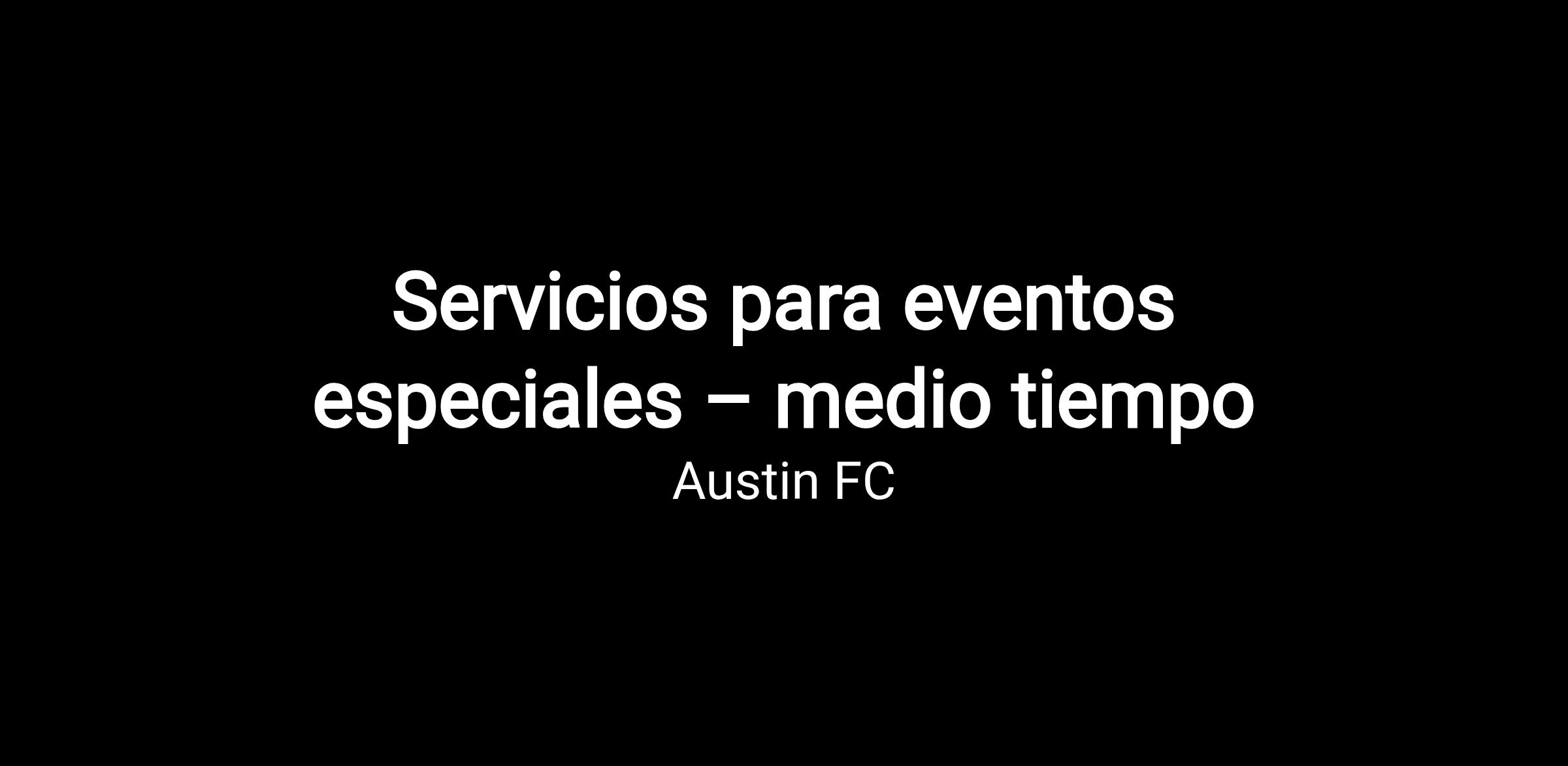 Austin FC está activamente buscando miembros de medio tiempo para su Equipo de Eventos Especiales que deberán trabajar con un equipo para asegurase de que cada evento se configure y ejecute correctamente para crear un ambiente que sobresalga para cada huésped en Q2 Stadium.