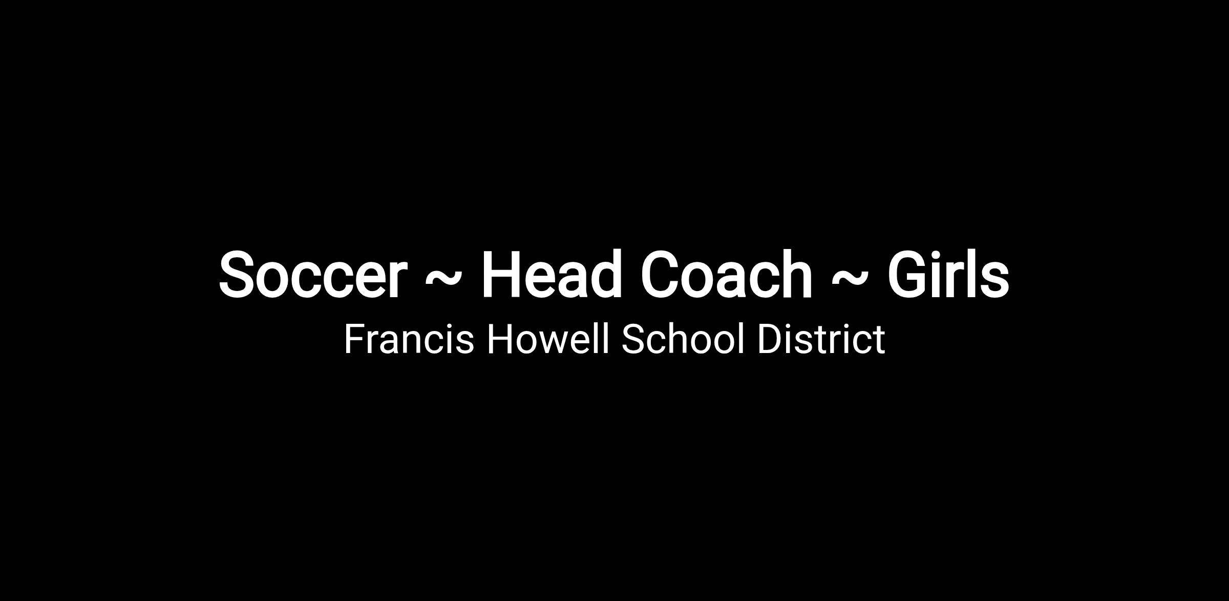 Extra-curricular activities are an important extension of the student experience. The Head Coach � Girls Soccer provides leadership and direction for the girls soccer program, including planning, organizing, and supervising all team activities. The Head Coach promotes skill development, teamwork, sportsmanship, and positive character while fostering strong relationships with student-athletes and representing the Francis Howell School District in a professional manner.