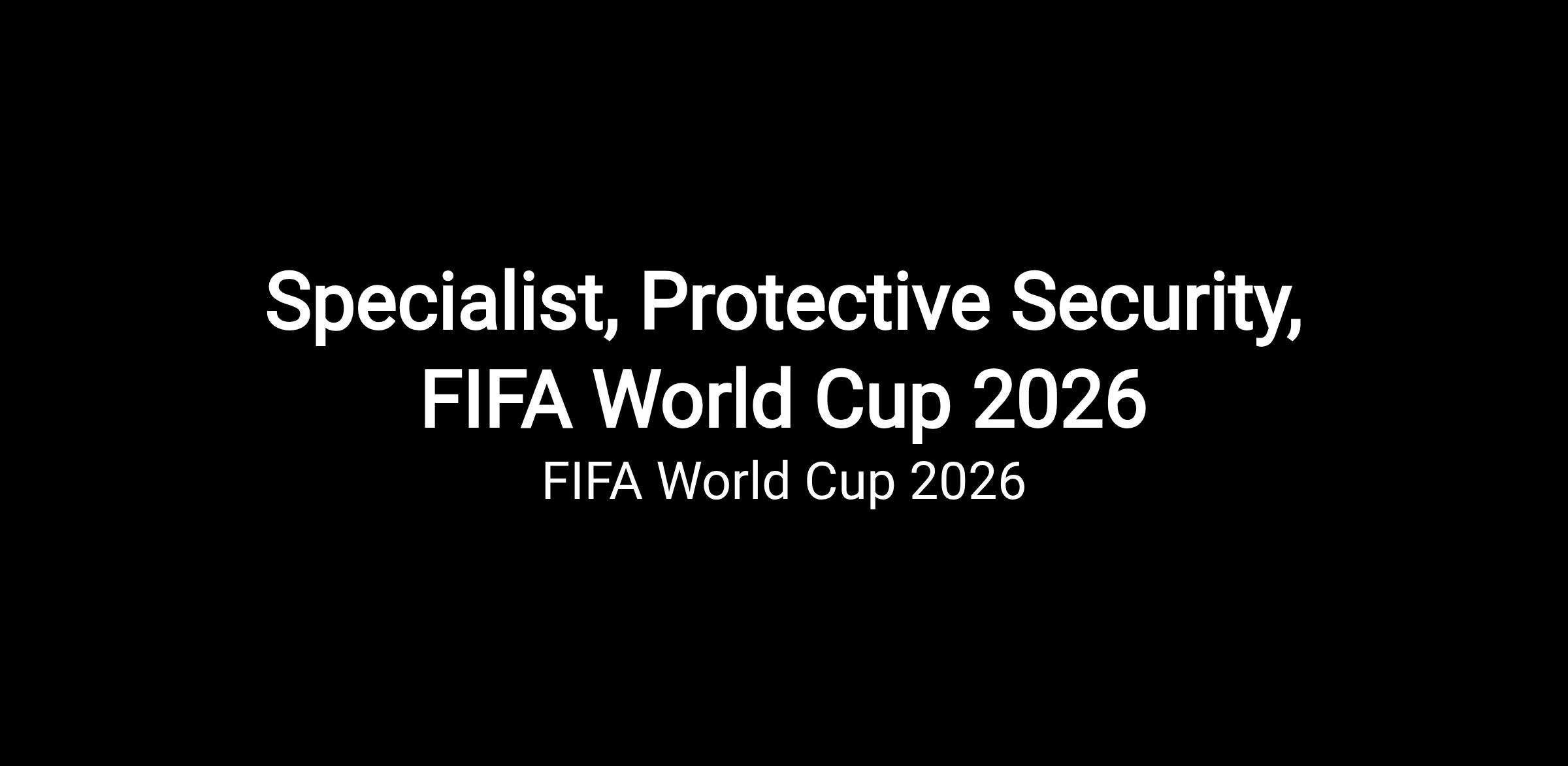 THE POSITION The main responsibilities of the Specialist, Protective Security for the FIFA World Cup 26™ include: