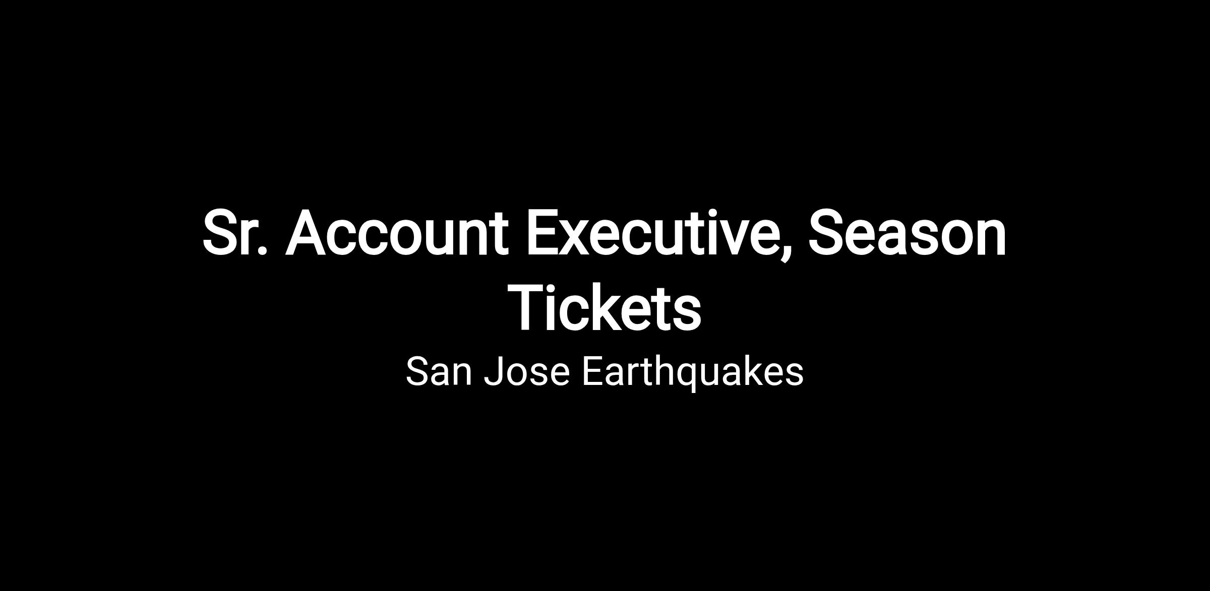The San Jose Earthquakes have a mission to establish our home as the epicenter of American soccer by uniting Northern California with big dreams, big hustle, and big impact. We are seeking a new, ambitious Senior Account Executive, Season Tickets who is resilient and a motivated self-starter.