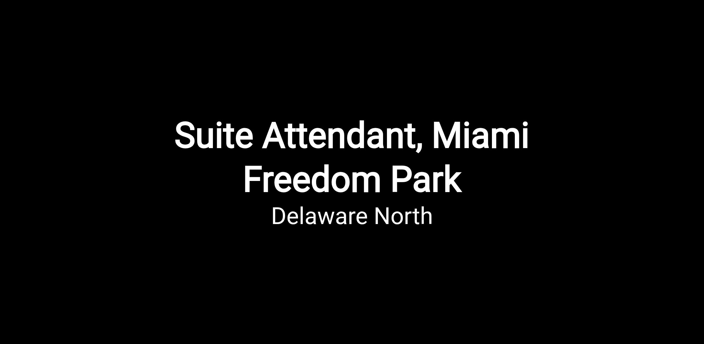Delaware North Sportservice is searching for seasonal Suite Attendants to join our team at Miami Freedom Park in Miami, Florida. As a Suite Attendant, you will be responsible for ensuring an effective operation of assigned luxury suites, including stocking, serving, and attending to guests' needs.
