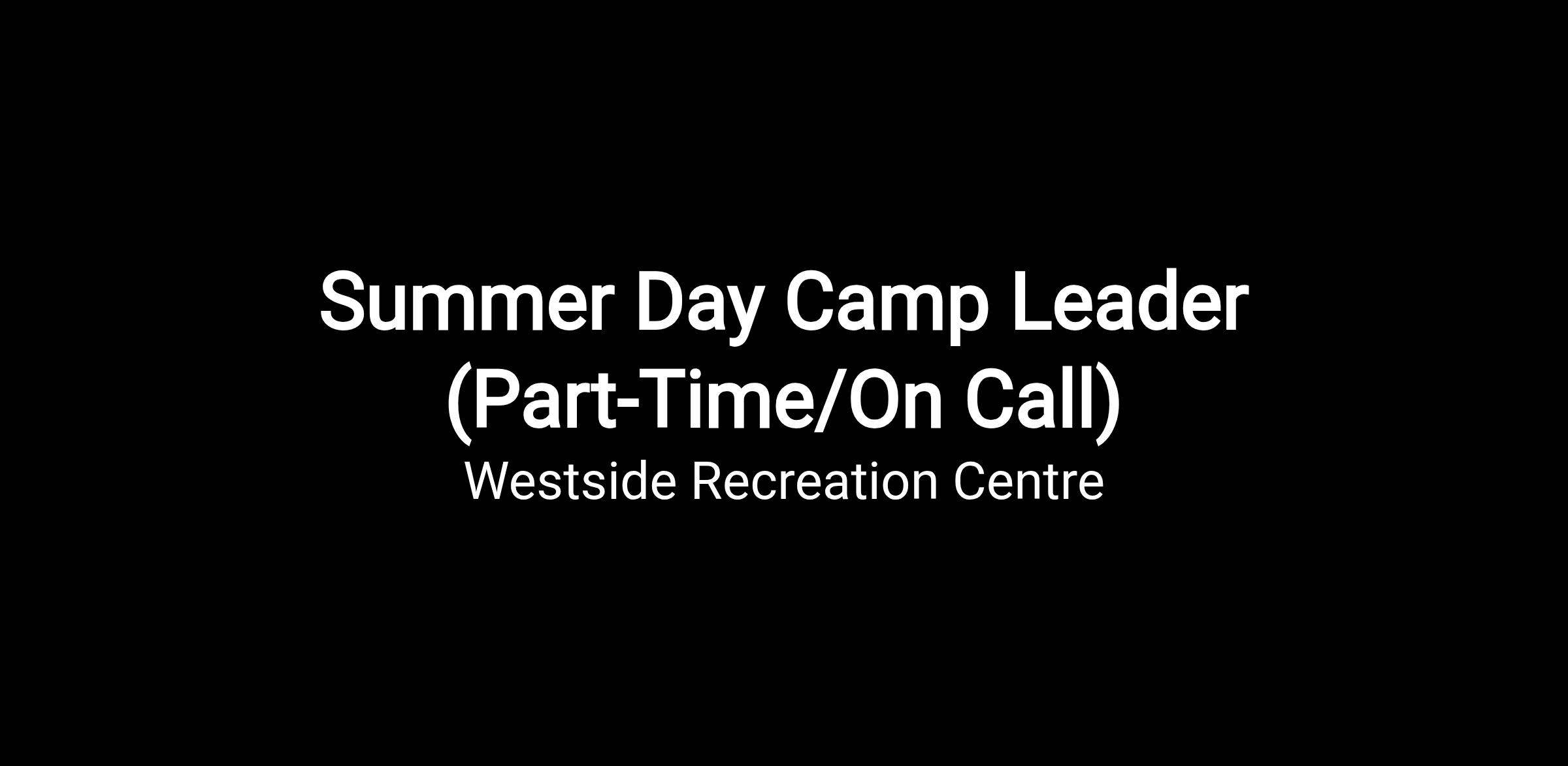 - Be available for minimum 6 out of 10 weeks throughout the summer. Summer day camps run from July 02-September 02, 2026. Part time/on call hours will be scheduled as needed, and will vary based on program registration and leader availability.